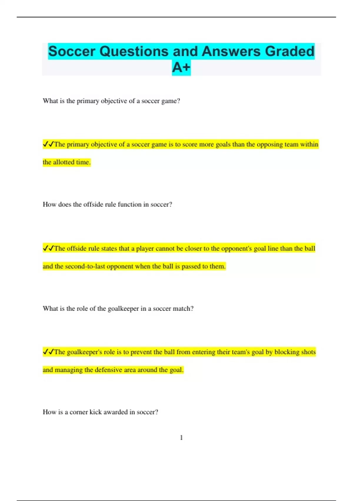 ✔✔The primary objective of a soccer game is to score more goals than the opposing team within