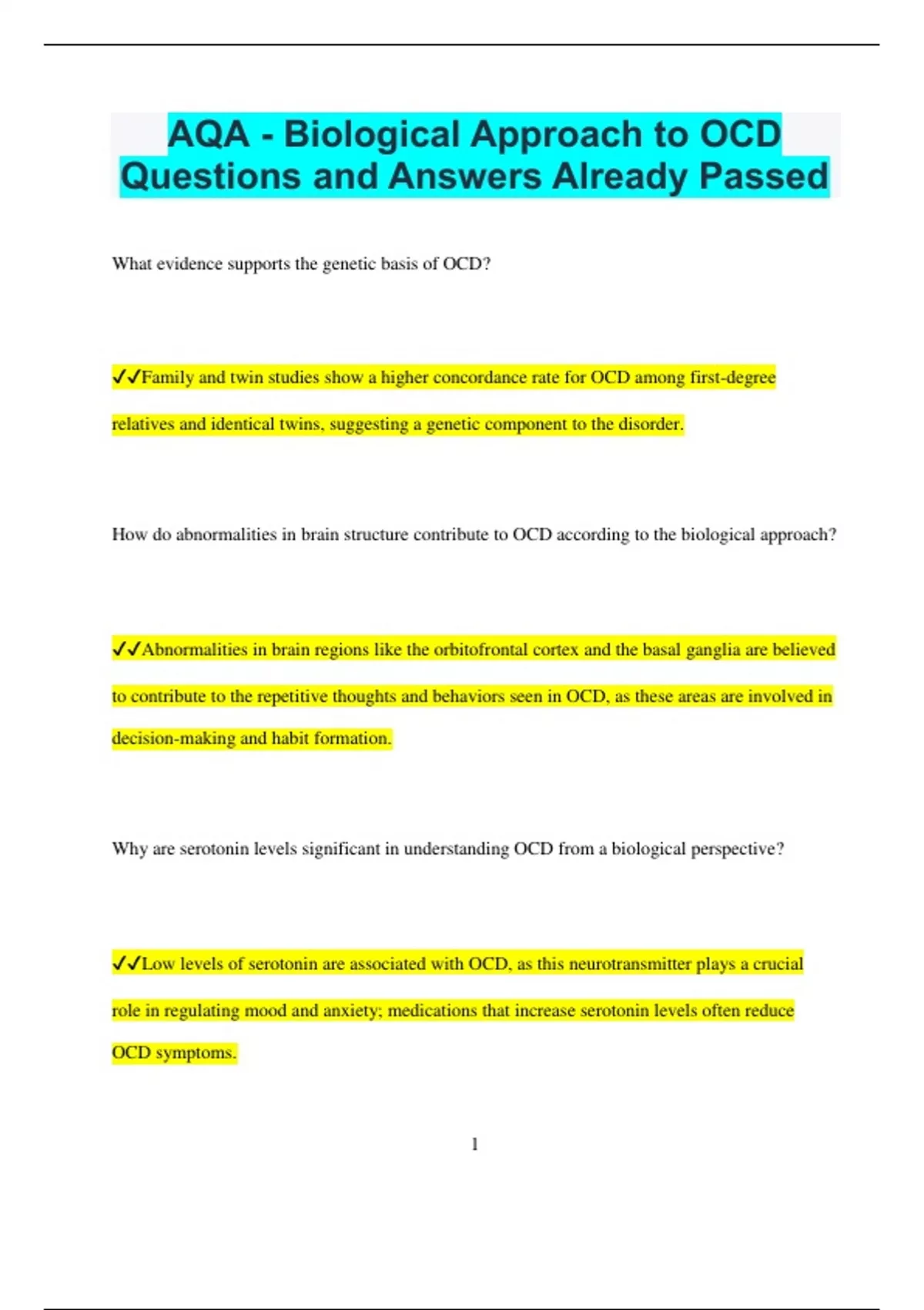 ✔✔Low levels of serotonin are associated with OCD, as this neurotransmitter plays a crucial