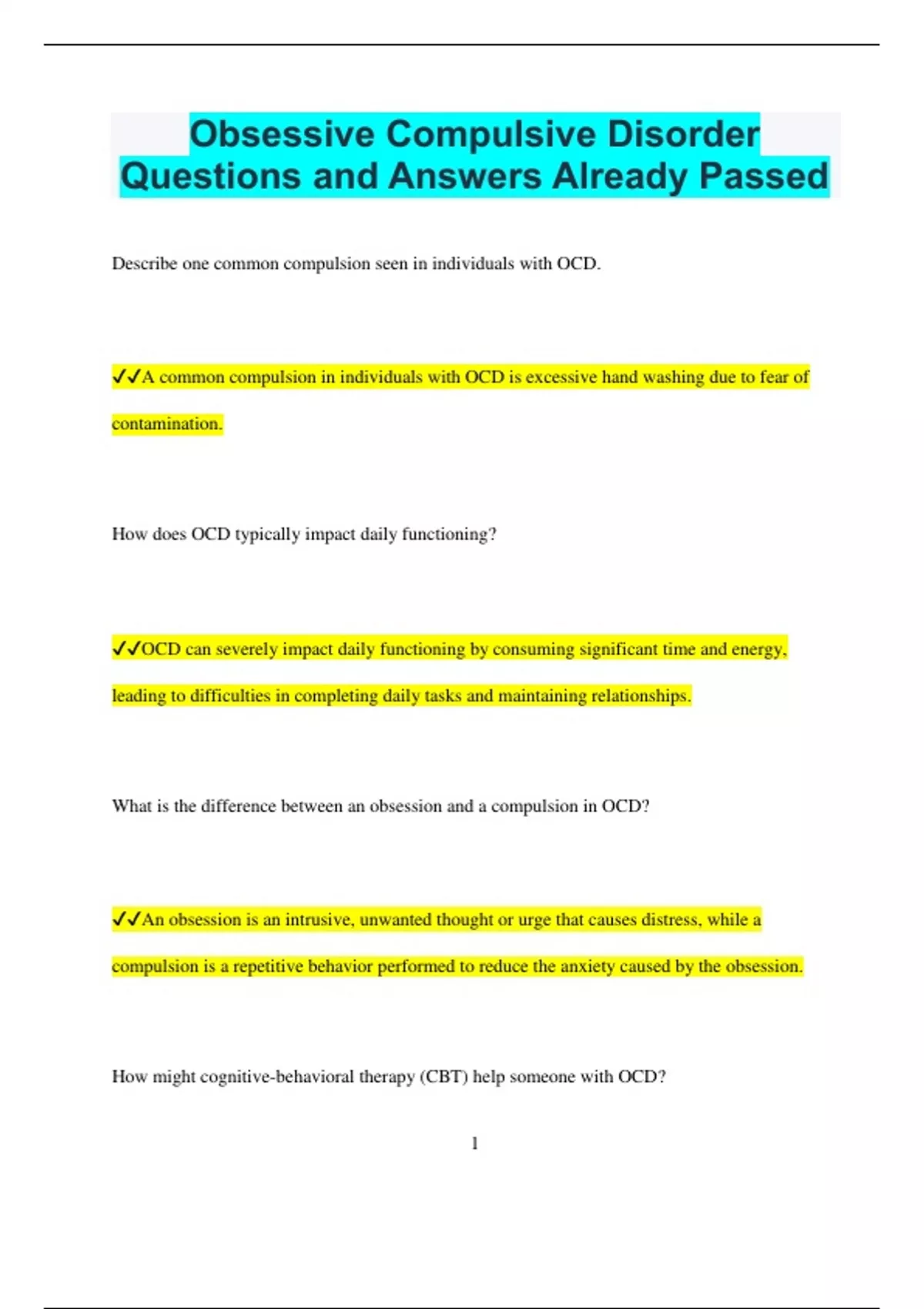 ✔✔A common compulsion in individuals with OCD is excessive hand washing due to fear of