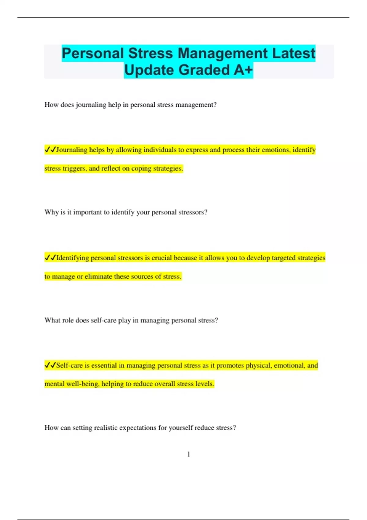 ✔✔Identifying personal stressors is crucial because it allows you to develop targeted strategies