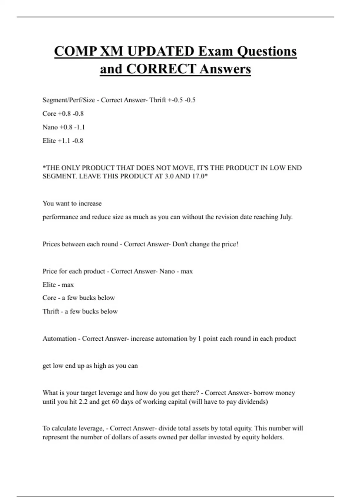 and CORRECT Answers