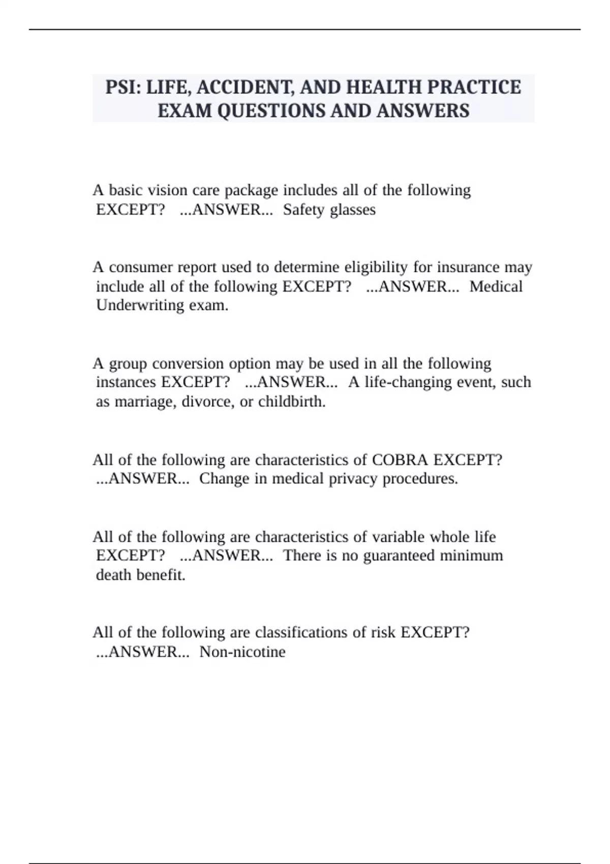 PSI: LIFE, ACCIDENT, AND HEALTH PRACTICE EXAM QUESTIONS AND ANSWERS