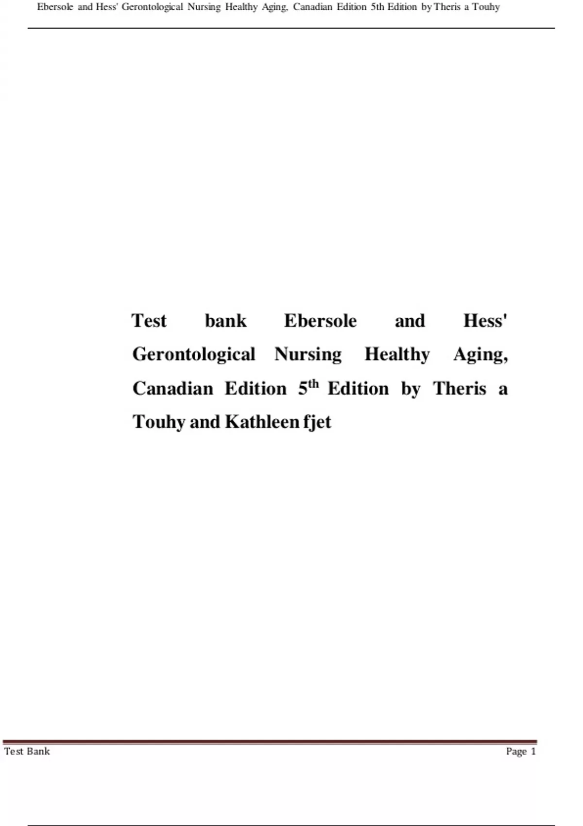 , Ebersole and Hess' Gerontological Nursing Healthy Aging, Canadian Edition 5th Edition by Theris a Touhy