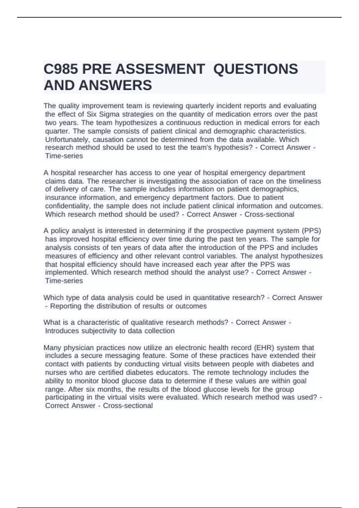 deffectiveness dof dthese ddocuments don dpatient doutcomes. dWhich dresearch dmethod dis