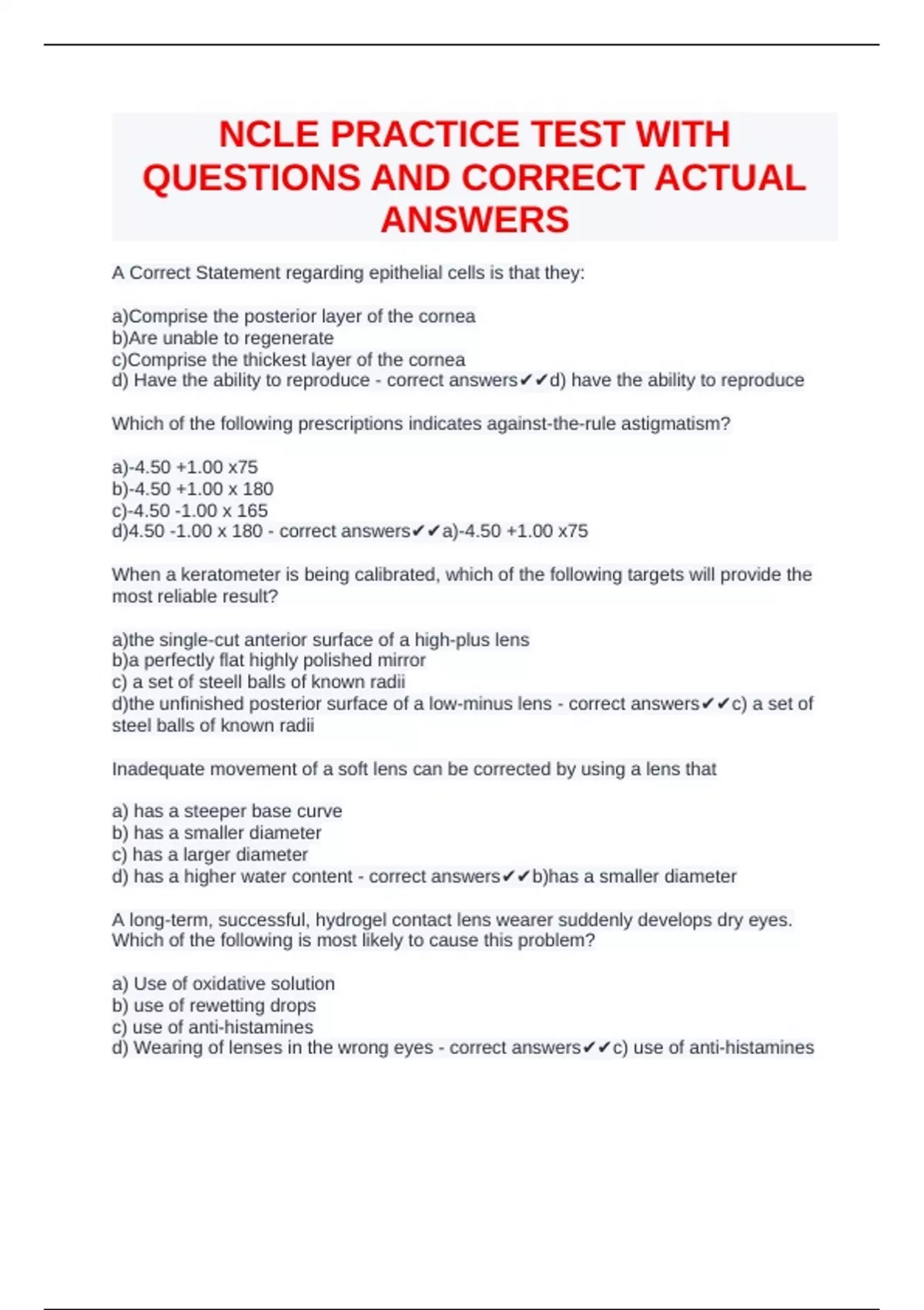 d)4.50 -1.00 x 180 - correct answers✔✔a)-4.50 +1.00 x75