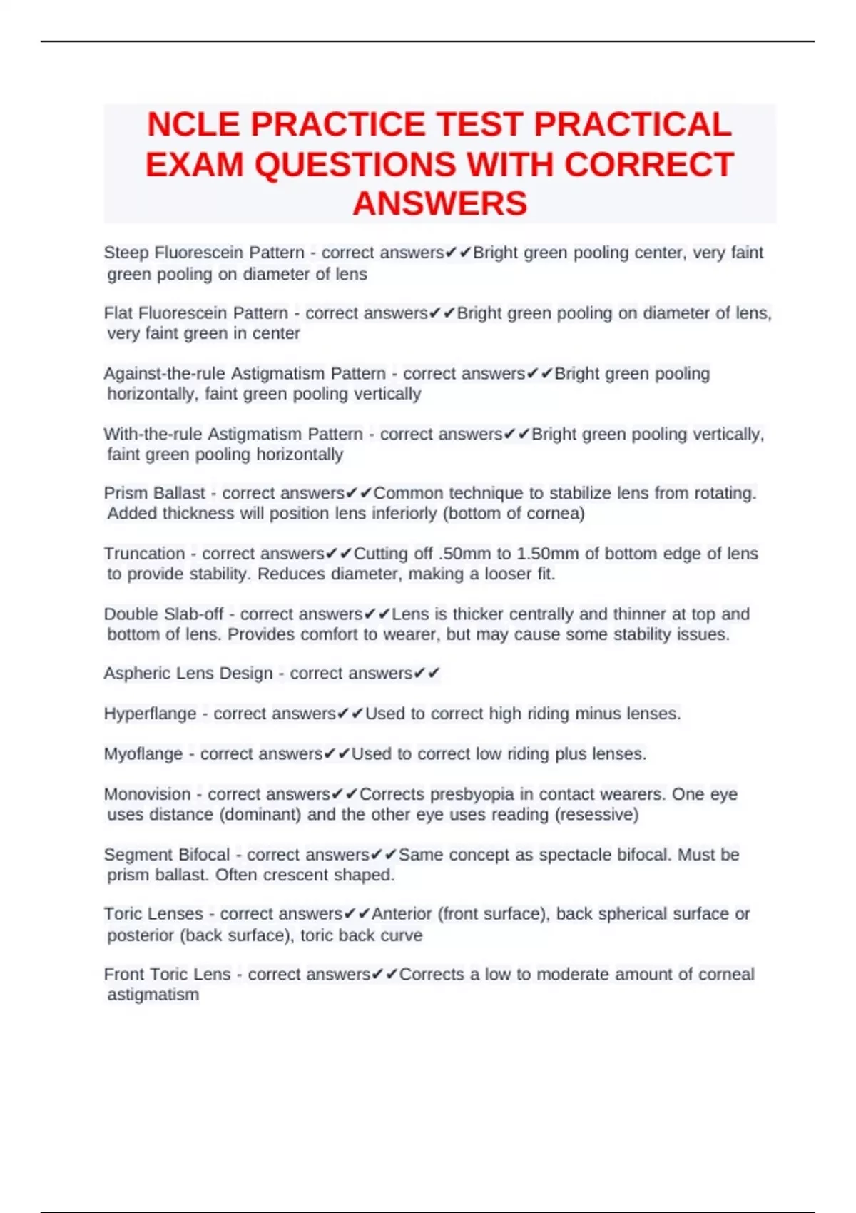, Back cToric cLens c- ccorrect canswers✔✔Corrects ca cmid cto chigh camount cof ccorneal