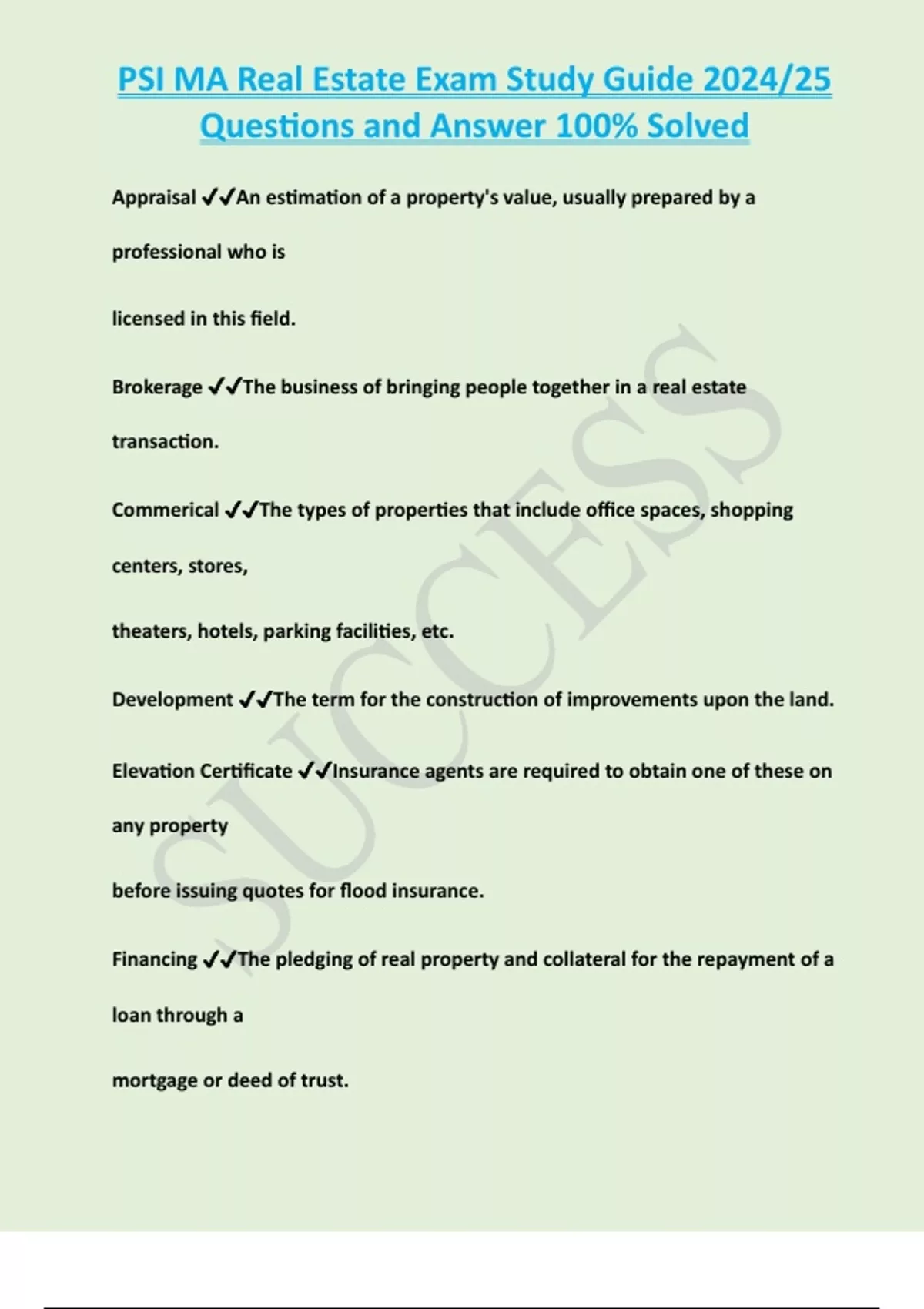 , PSI MA Real Estate Exam Study Guide 2024/25