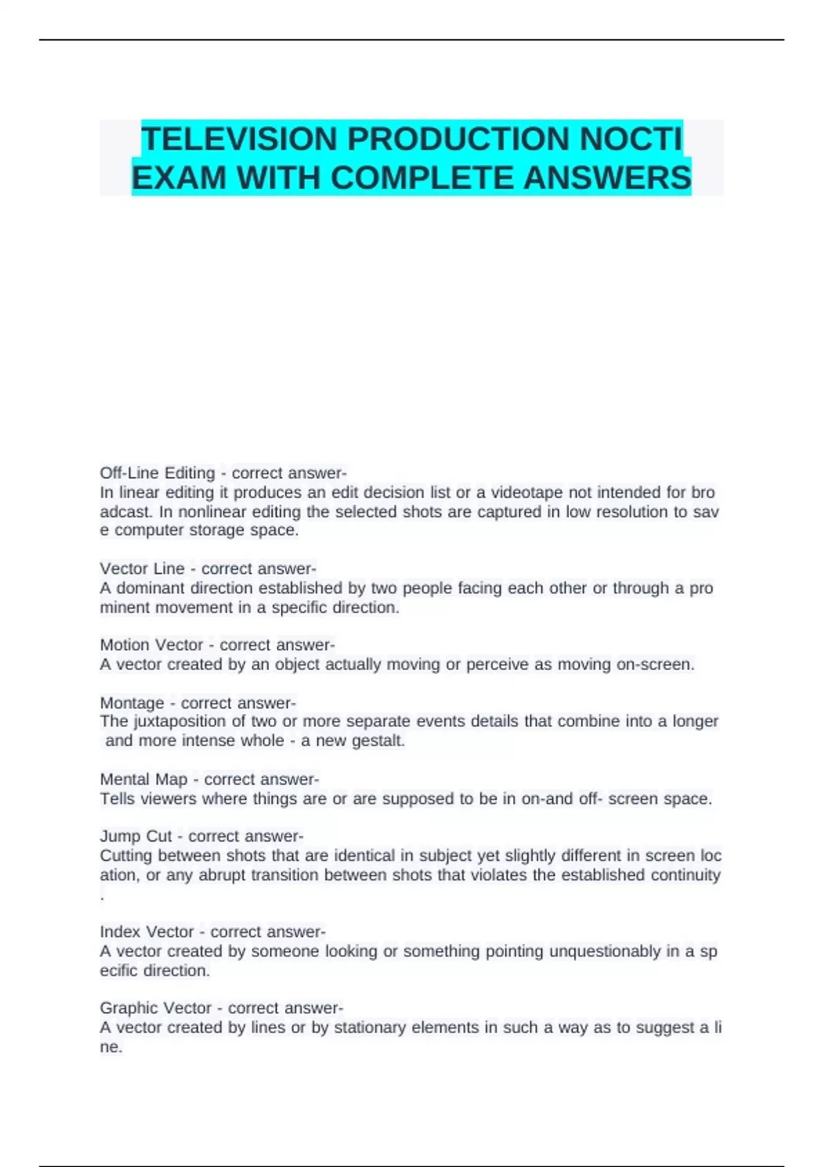 TELEVISION PRODUCTION NOCTI EXAM WITH COMPLETE ANSWERS