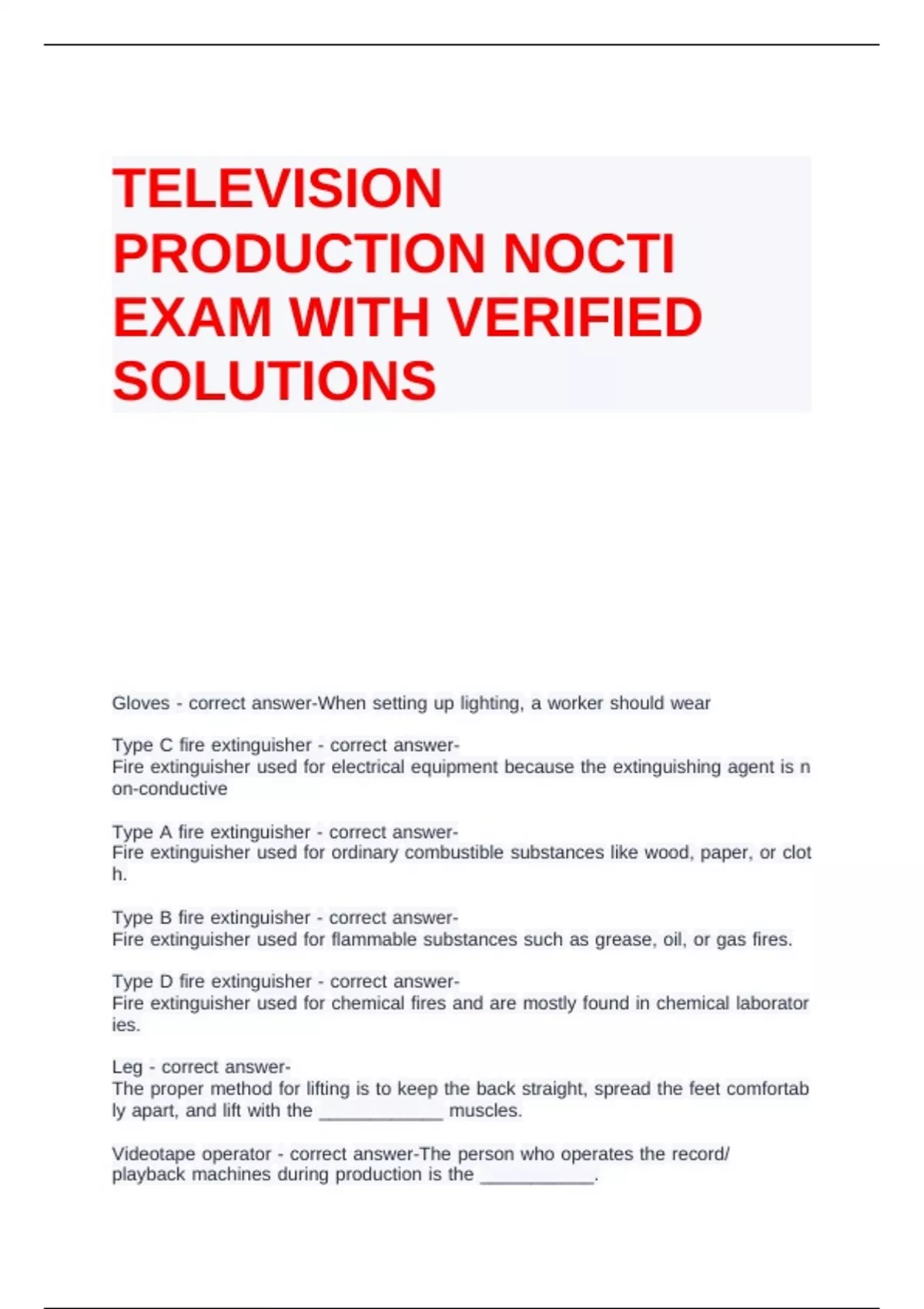 TELEVISION PRODUCTION NOCTI EXAM WITH VERIFIED SOLUTIONS