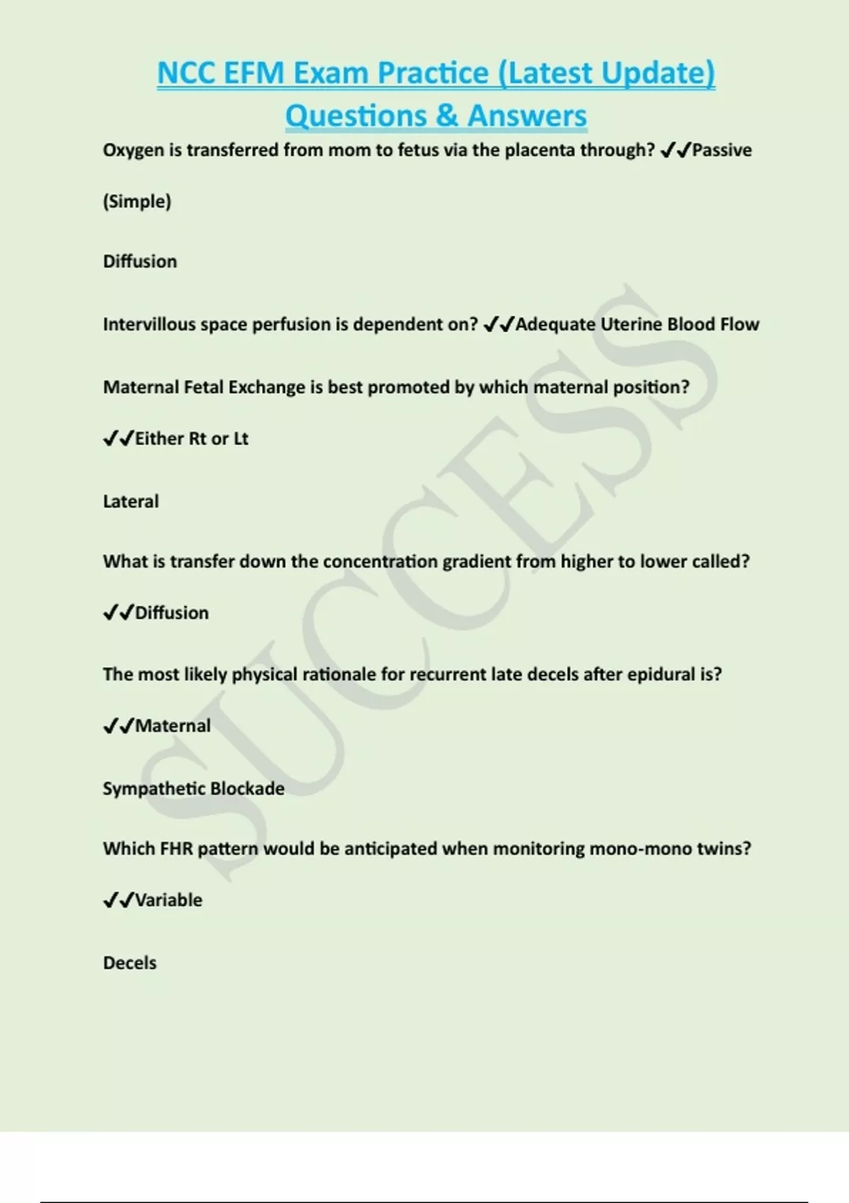 Oxygen is transferred from mom to fetus via the placenta through? ✔✔Passive