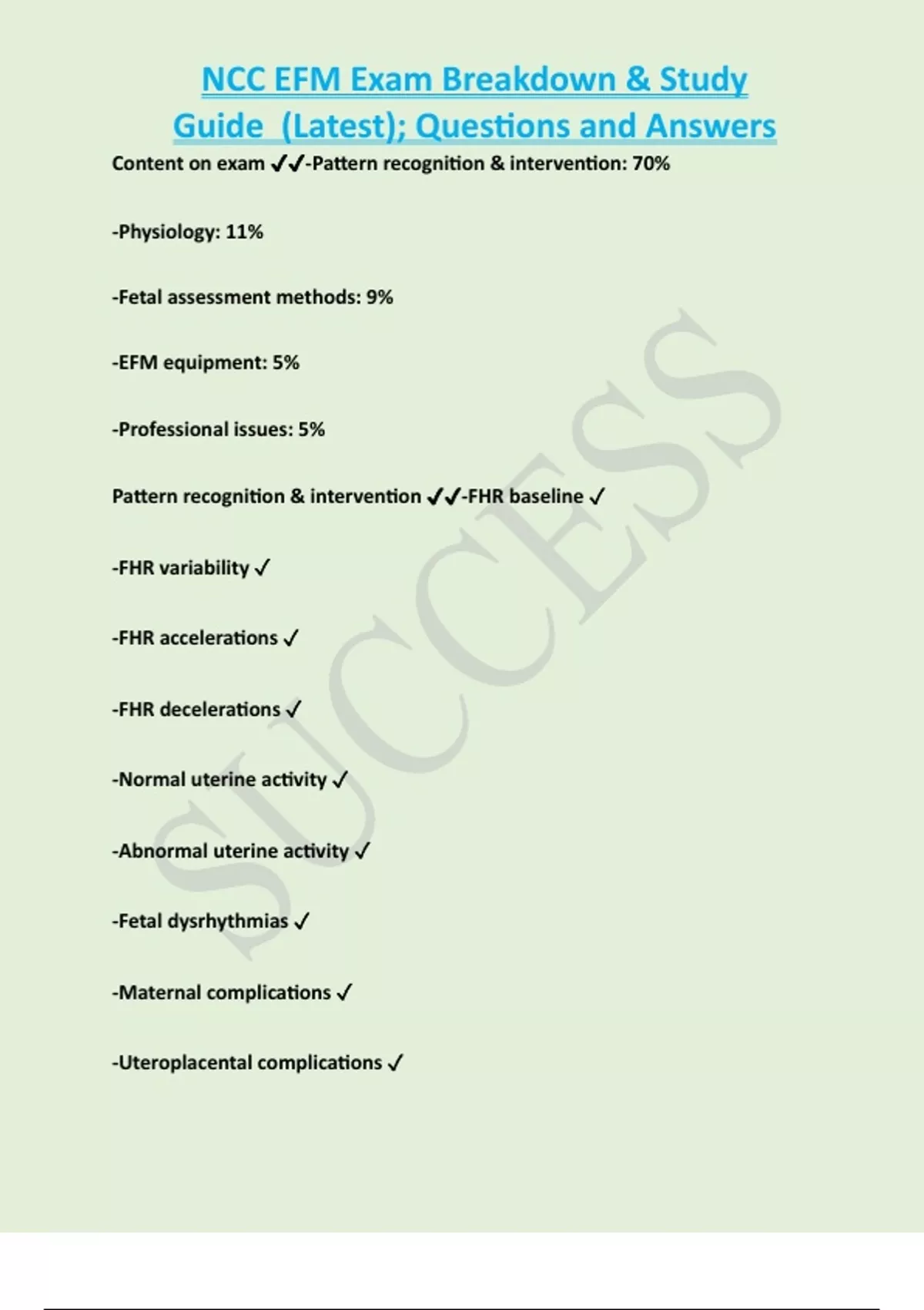 Content on exam ✔✔-Pattern recognition & intervention: 70%