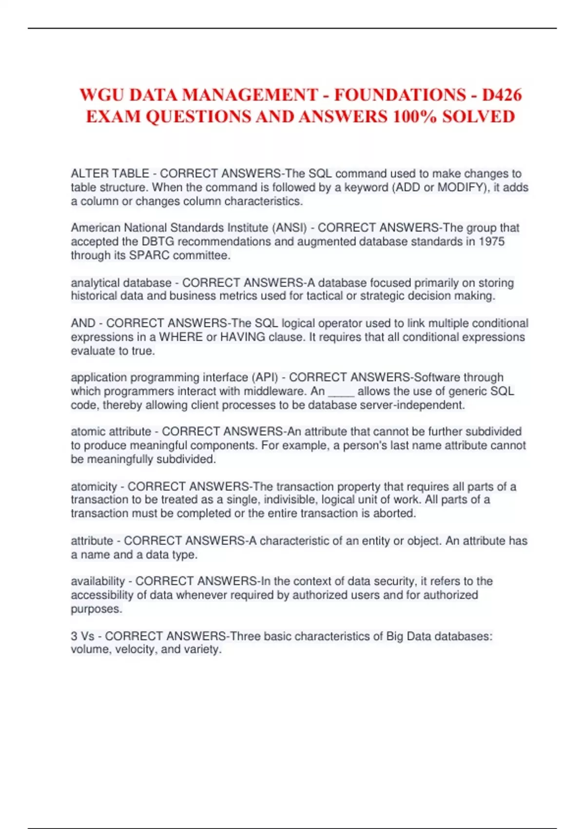WGU DATA MANAGEMENT - FOUNDATIONS - D426