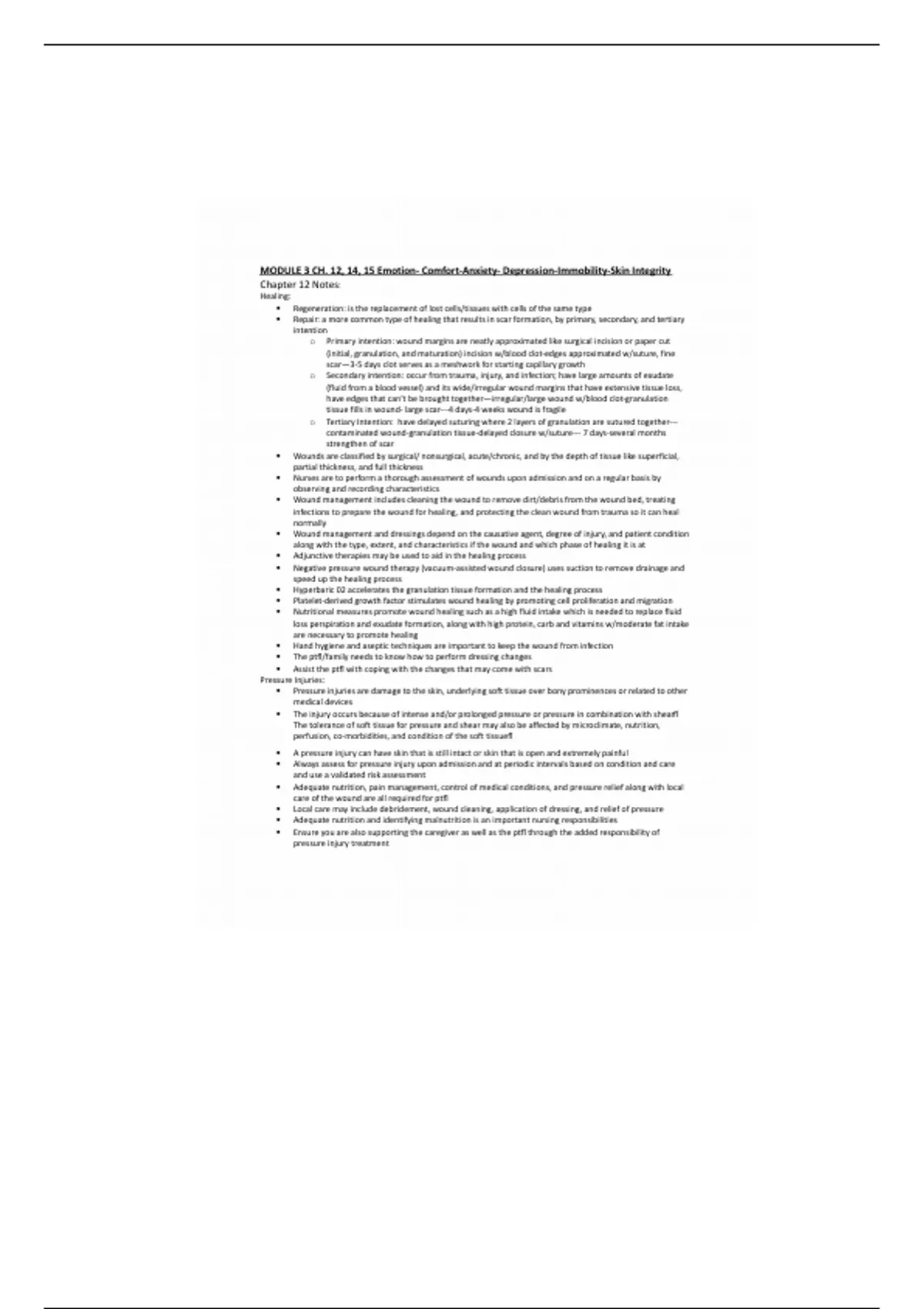 o Secondary intention: occur from trauma, injury, and infection; have large amounts of exudate