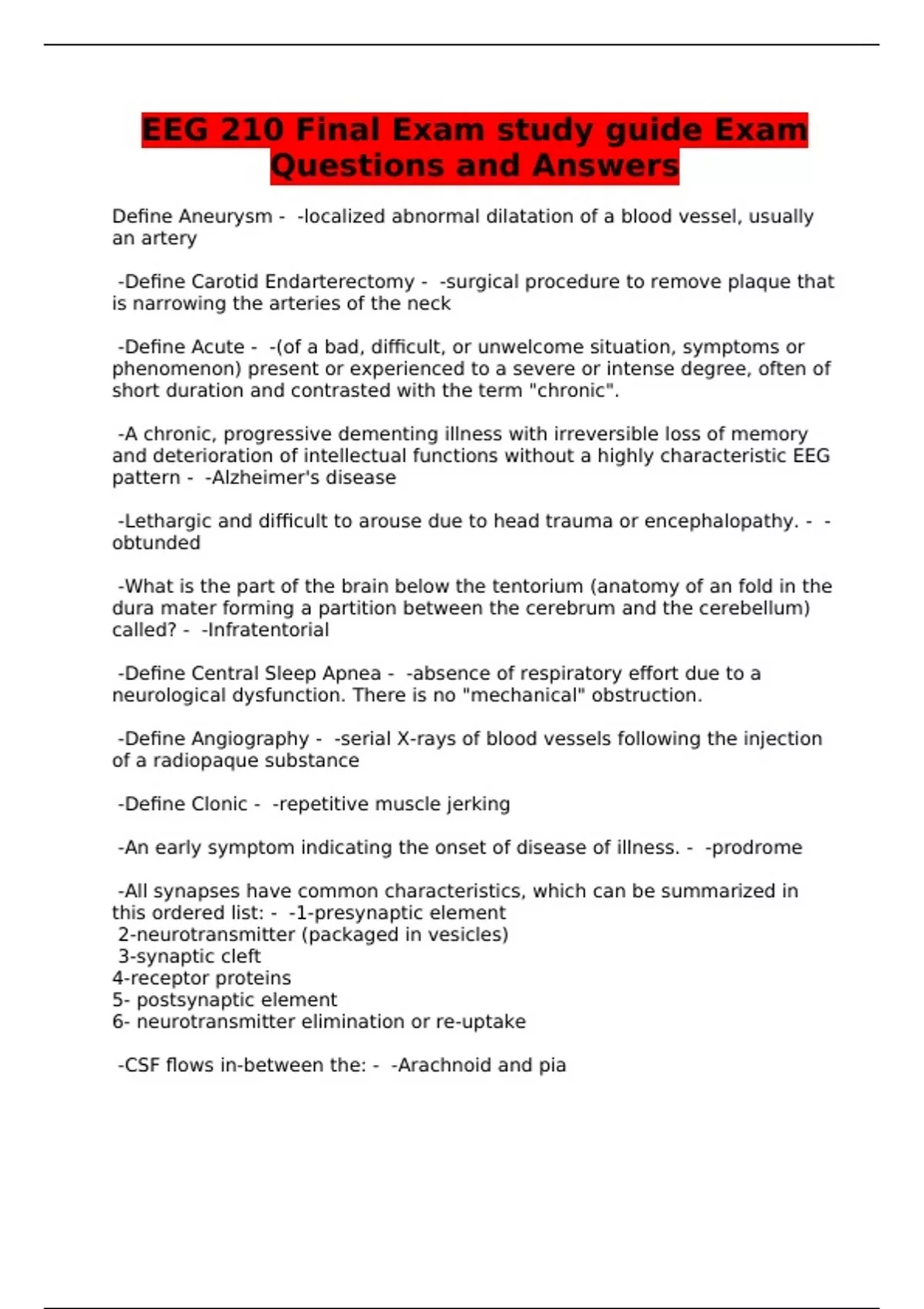 EEG 210 Final Exam study guide Exam