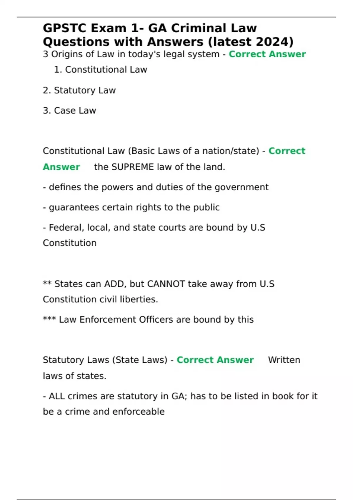 Statutory Laws (State Laws) - Correct Answer ✅Written