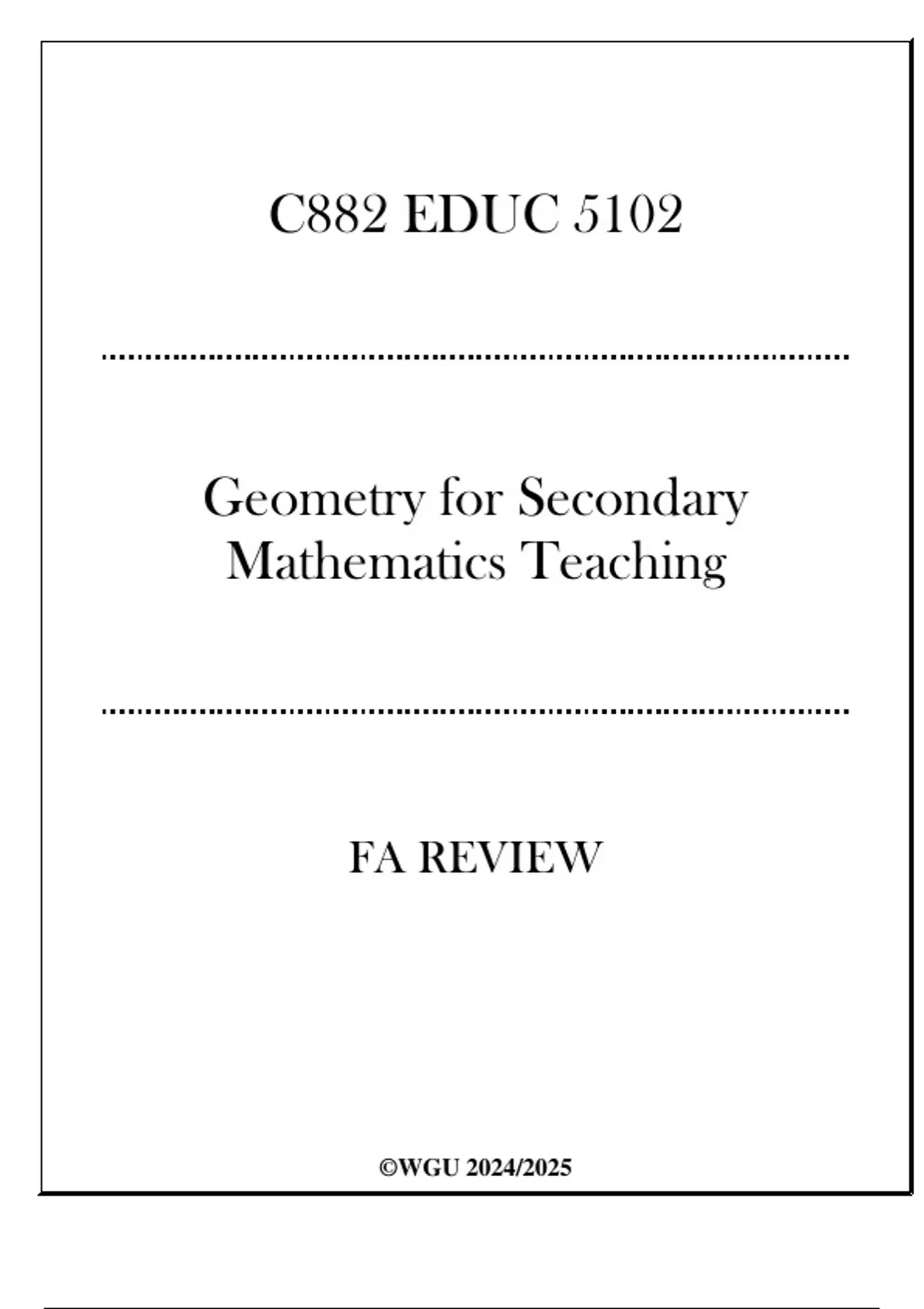 vv(WGU C882) - EDUC 5102 Geometry for Secondary Mathematics Teaching - FA Review .(WGU C882) - EDUC 5102 Geometry for Secondary Mathematics Teaching - FA Review .(WGU C882) - EDUC 5102 Geometry for Secondary Mathematics Teaching - FA Review .