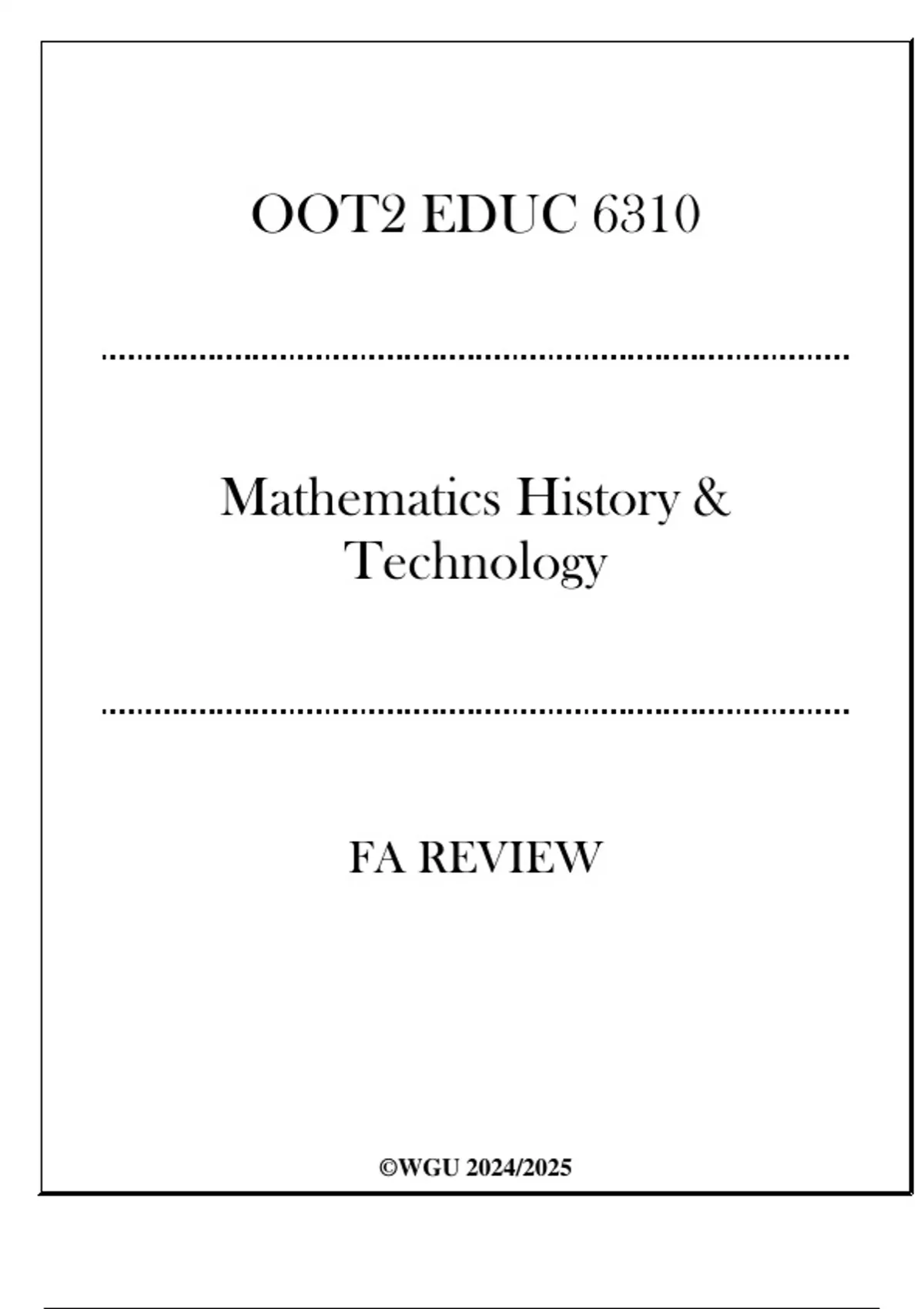 (WGU OOT2) - EDUC 6310 Mathematics History & Technology - FA Review .(WGU OOT2) - EDUC 6310 Mathematics History & Technology - FA Review .(WGU OOT2) - EDUC 6310 Mathematics History & Technology - FA Review .(WGU OOT2) - EDUC 6310 Mathematics History & Technology - FA Review .