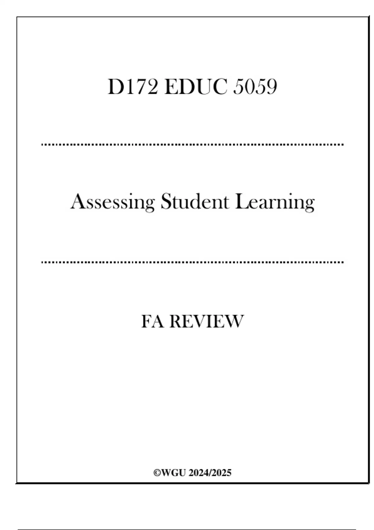 (WGU D172) - EDUC 5059 Assessing Student Learning - FA Review (WGU D172) - EDUC 5059 Assessing Student Learning - FA Review (WGU D172) - EDUC 5059 Assessing Student Learning - FA Review