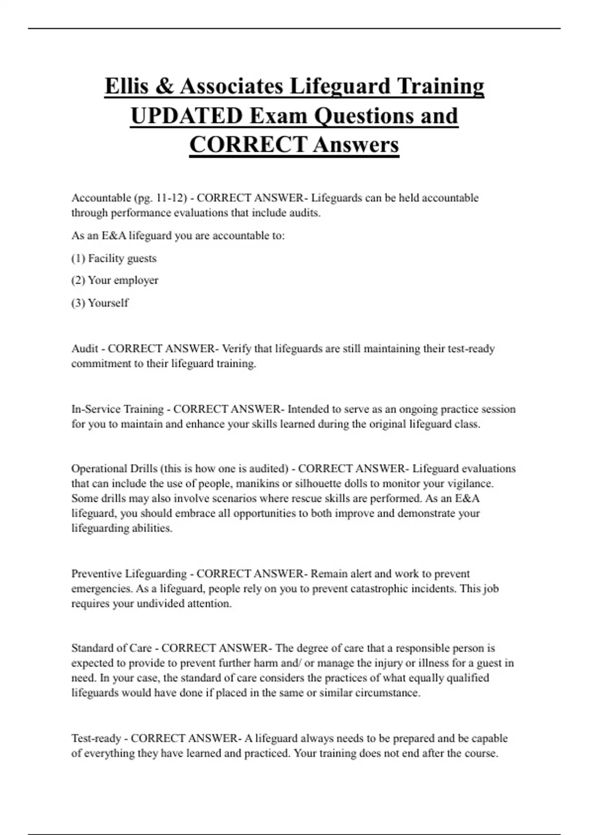 Accountable (pg. 11-12) - CORRECT ANSWER- Lifeguards can be held accountable