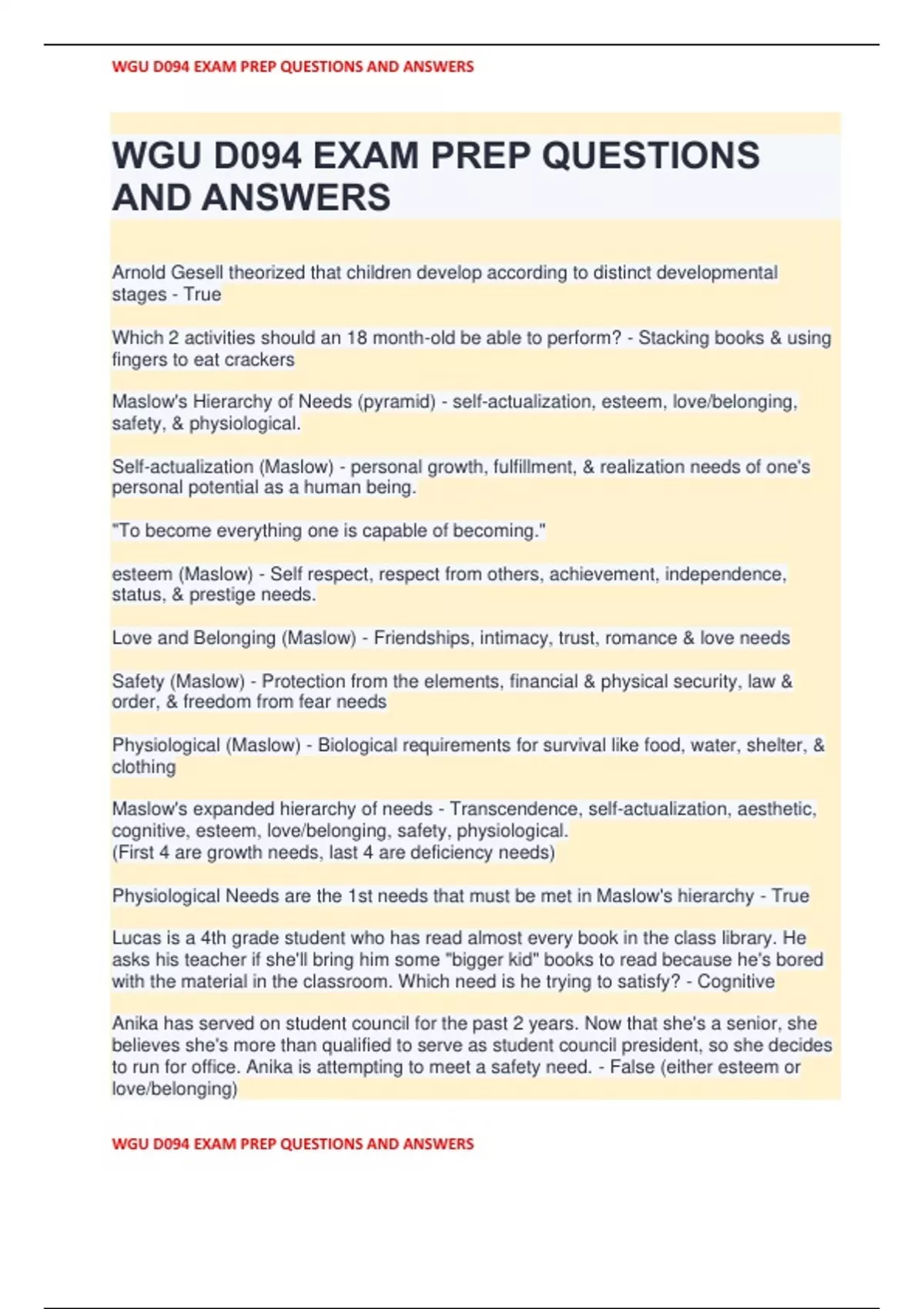 , WGU D094 EXAM PREP QUESTIONS AND ANSWERS