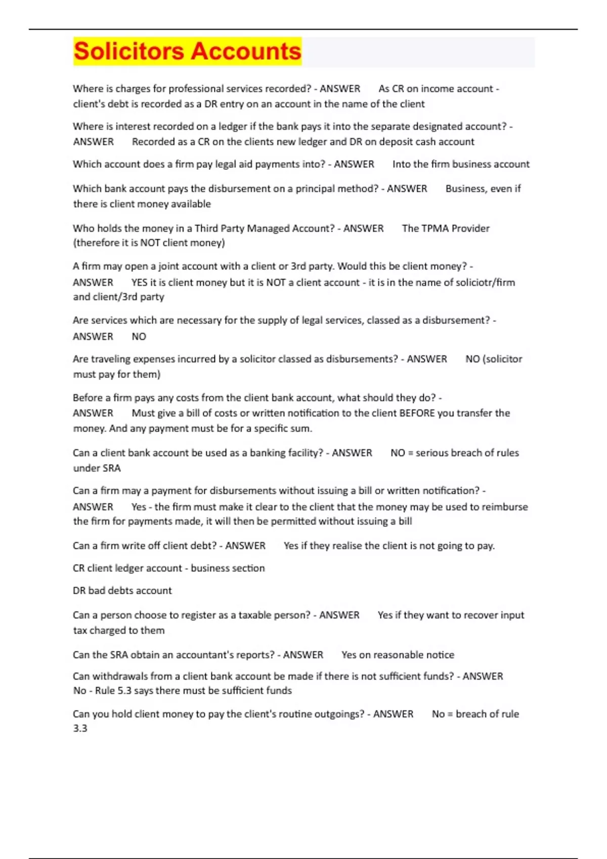 , Solicitors Accounts