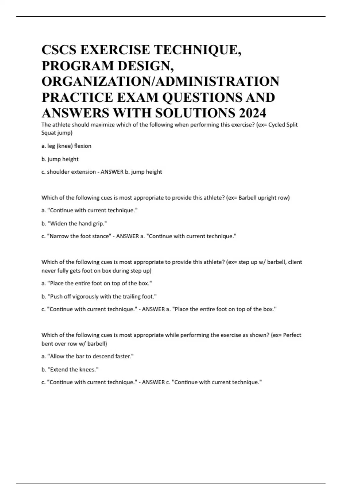 Which of the following cues is most appropriate to provide this athlete? (ex= step up w/ barbell, client
