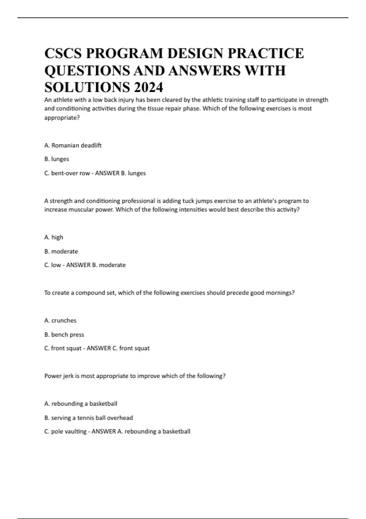 A strength and conditioning professional is designing a reconditioning program for an athlete who has