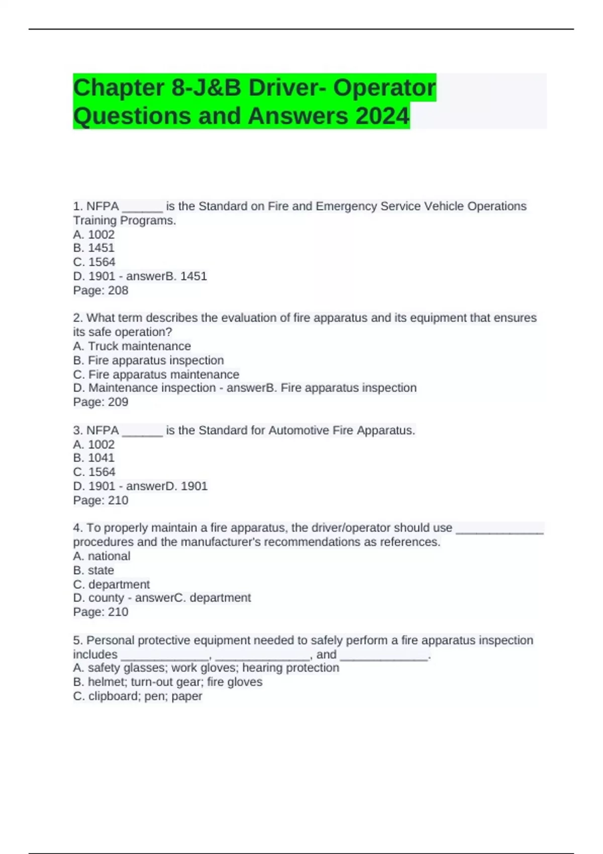 D. Maintenance inspection - answerB. Fire apparatus inspection