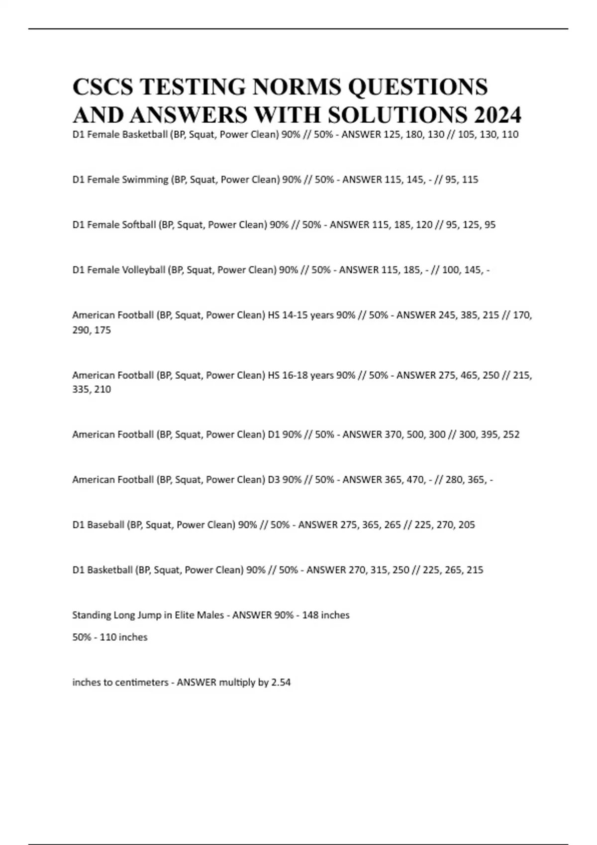 American Football (BP, Squat, Power Clean) HS 16-18 years 90% // 50% - ANSWER 275, 465, 250 // 215,