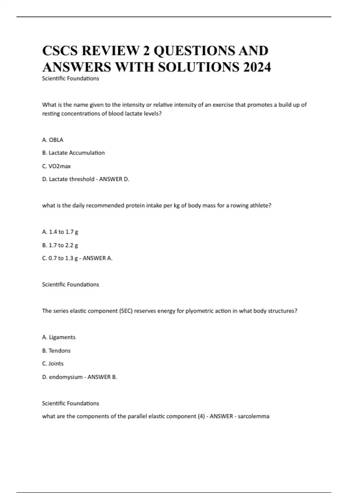 CSCS REVIEW 2 QUESTIONS AND ANSWERS WITH SOLUTIONS 2024