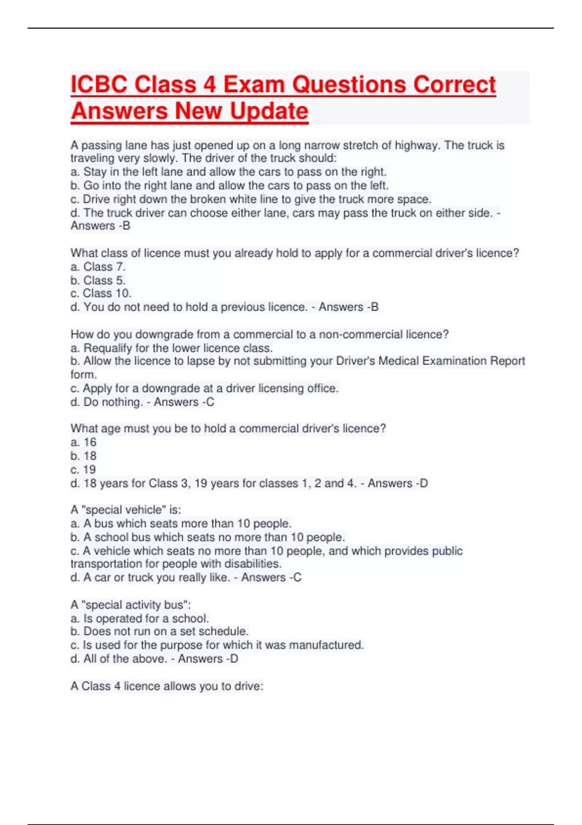 b. A Class 4 driver's licence.