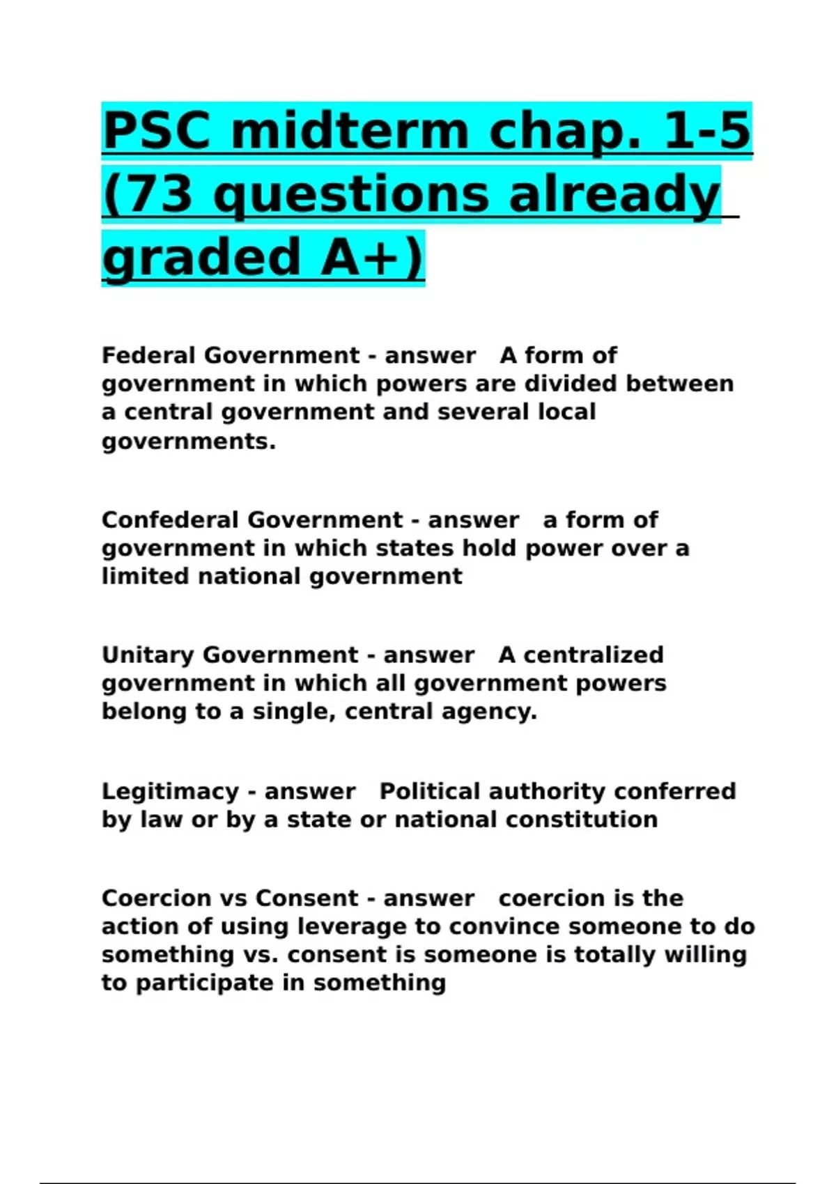 PSC midterm chap. 1-5 (73 questions already graded A+).