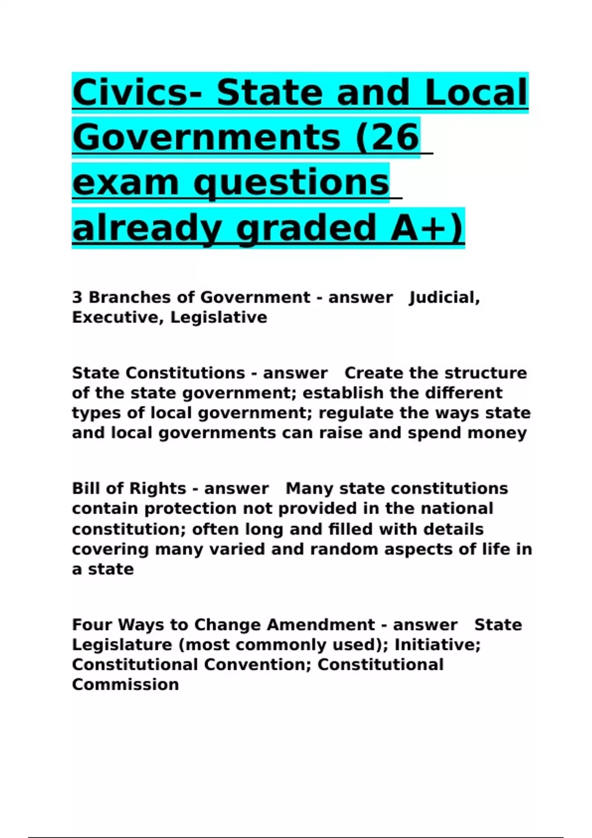 Bill of Rights - answer Many state constitutions