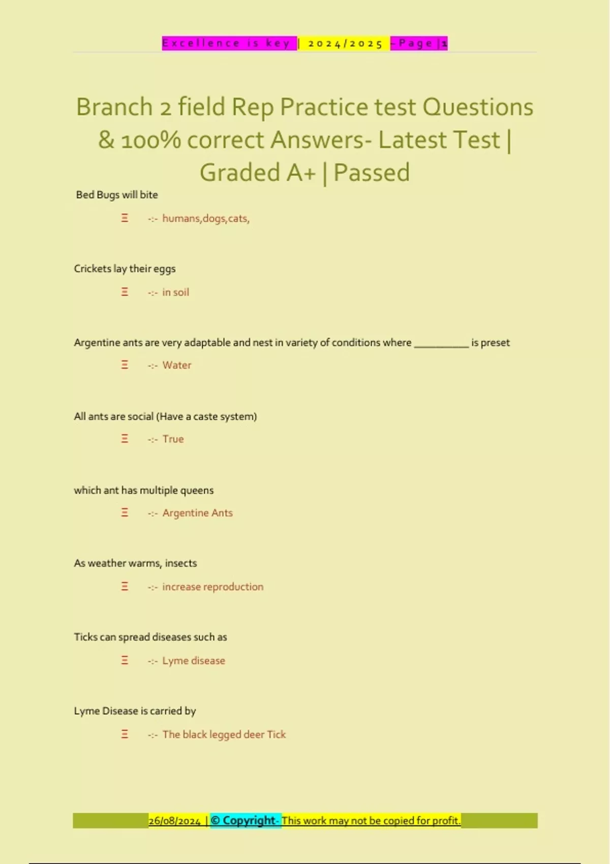 Branch 2 field Rep Practice test Questions & 100% correct Answers- Latest Test | Graded A+ | Passed