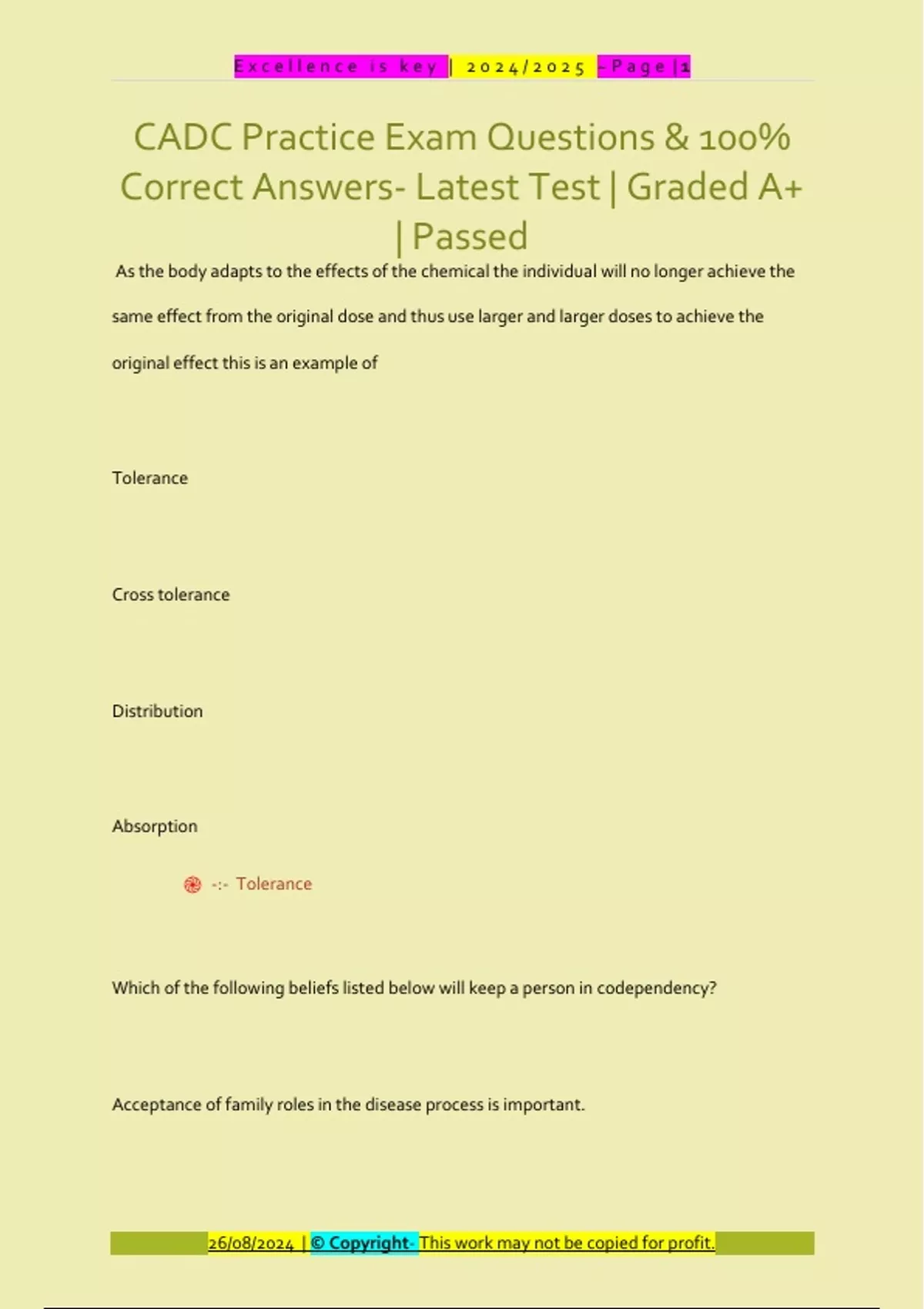 CADC Practice Exam Questions & 100%