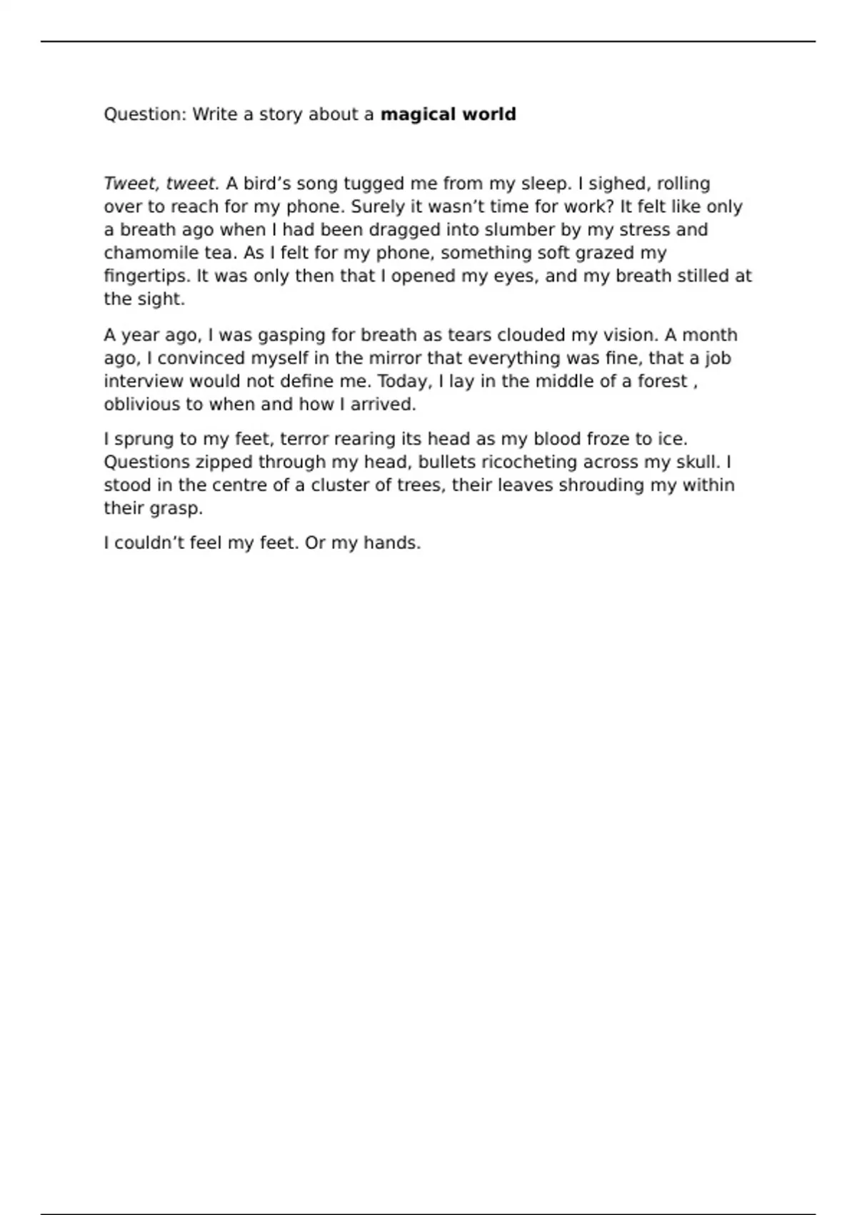 interview would not define me. Today, I lay in the middle of a forest ,
