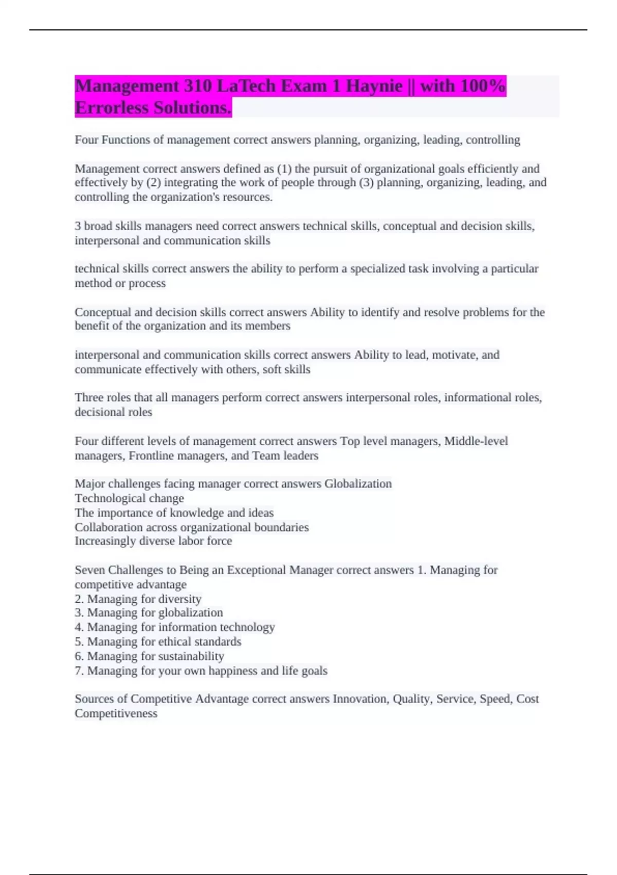 Management 310 LaTech Exam 1 Haynie || with 100%