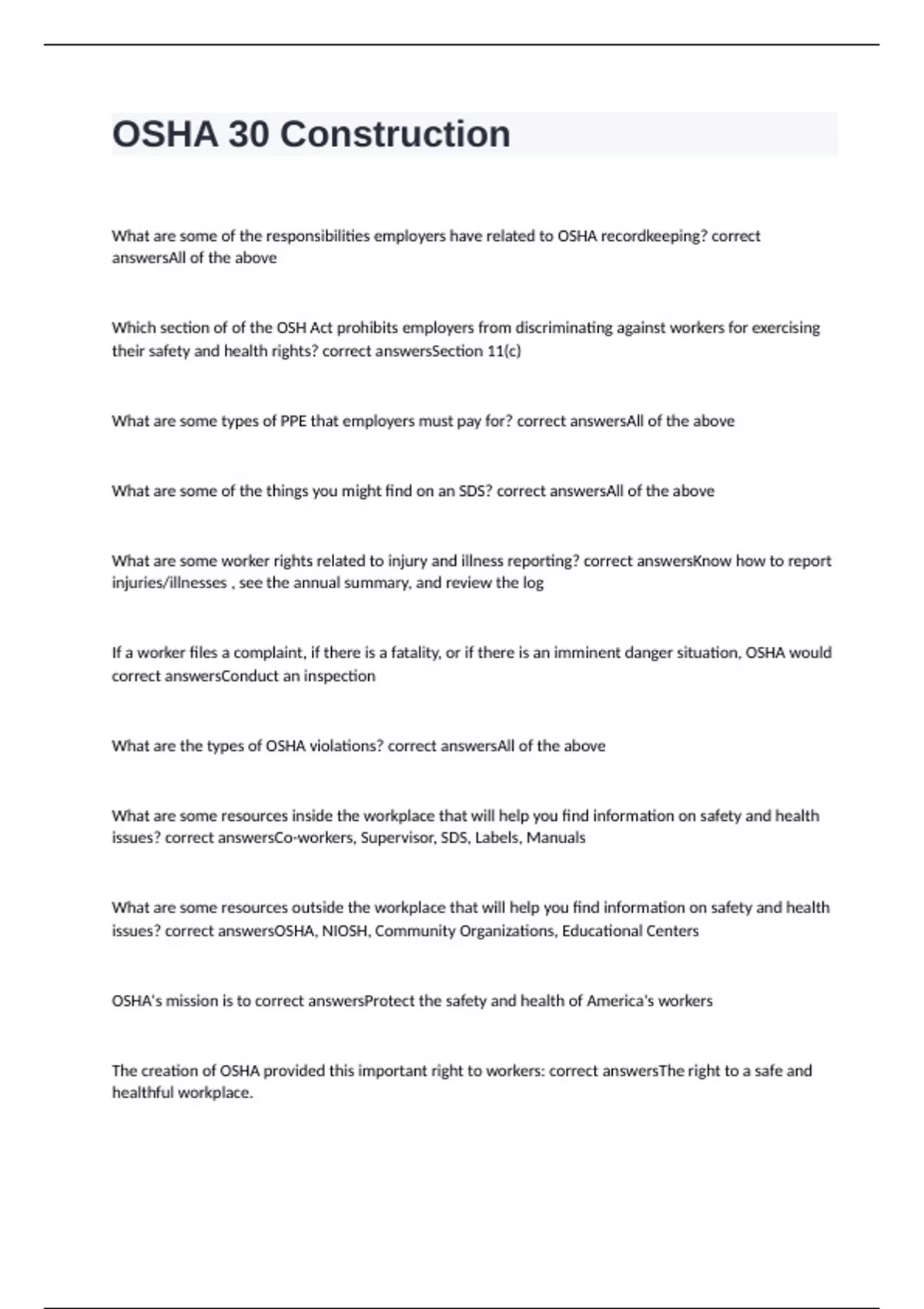 The creation of OSHA provided this important right to workers: correct answersThe right to a safe and