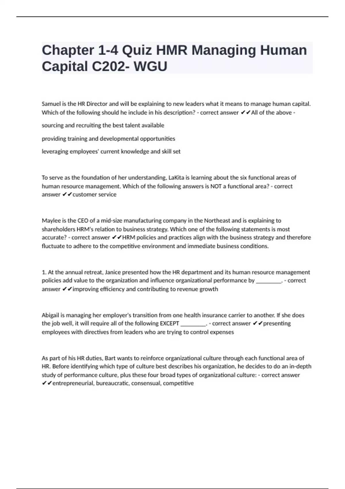 accurate? - correct answer ✔✔HRM policies and practices align with the business strategy and therefore
