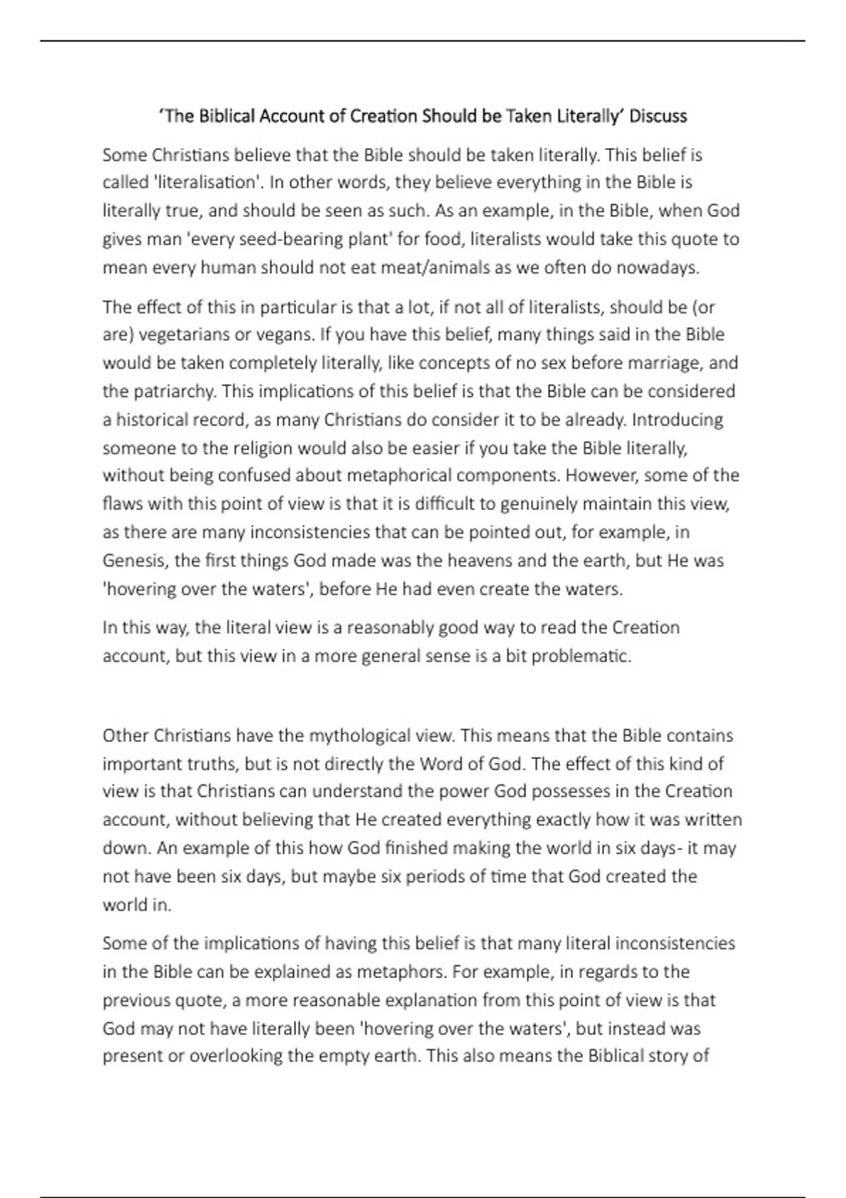 In conclusion, the Biblical account of Crea on should not be taken literally.
