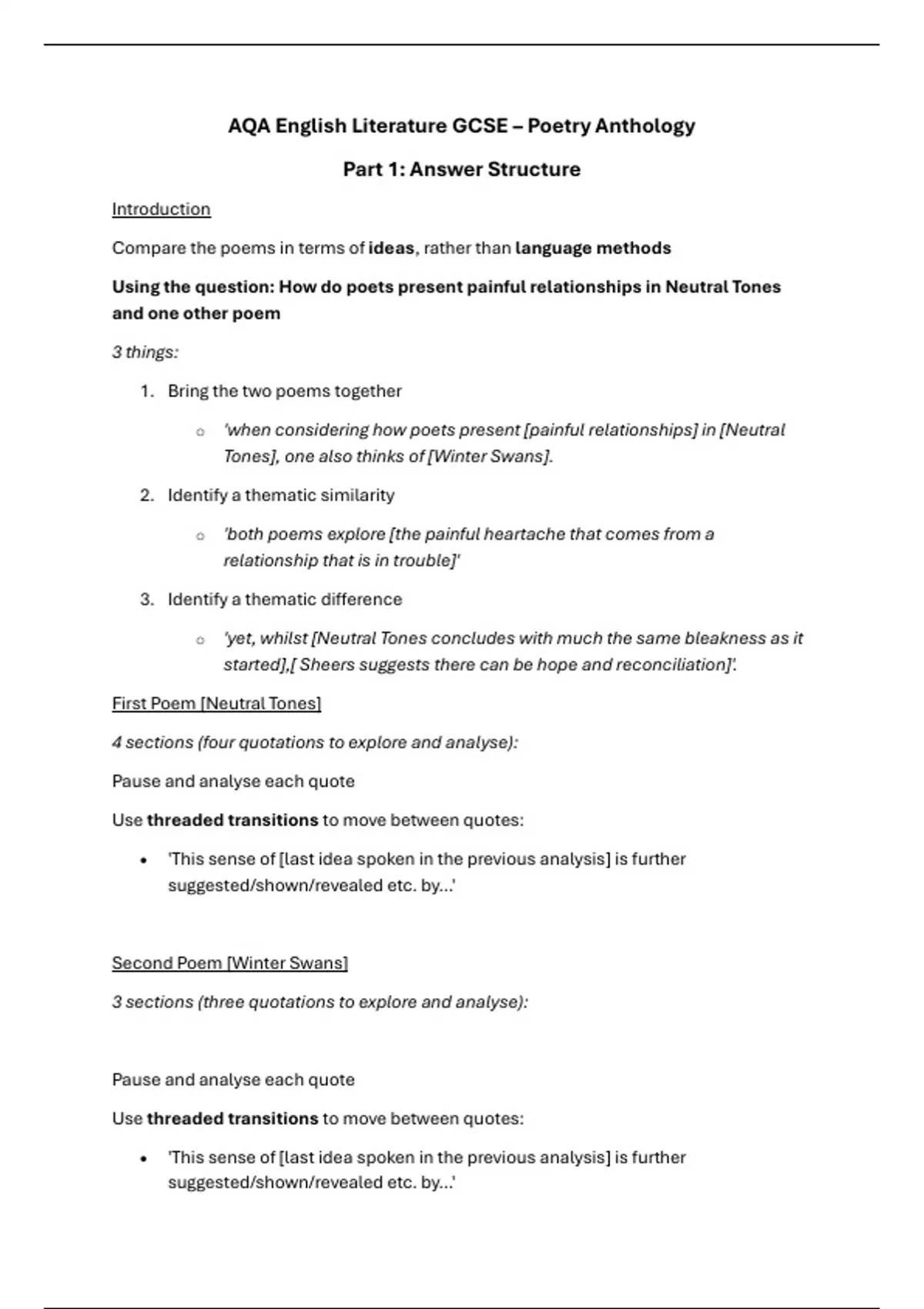 in [Neutral Tones], one also thinks of [Winter Swans].