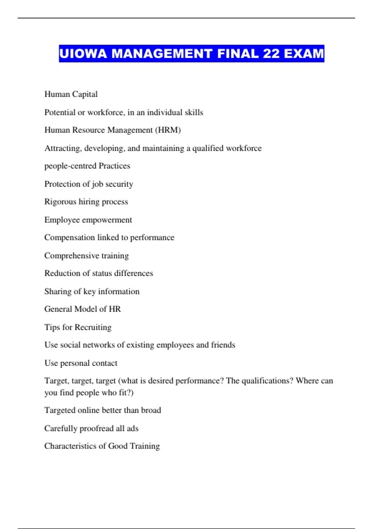 UIOWA MANAGEMENT FINAL 22 EXAM