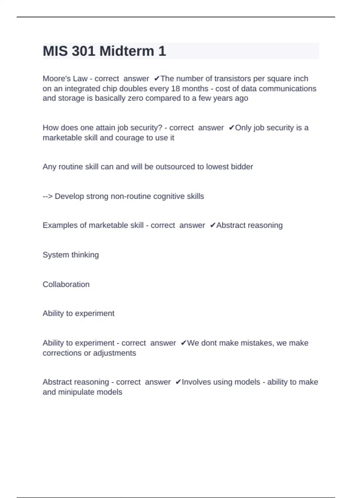 Examples of marketable skill - correct answer ✔Abstract reasoning
