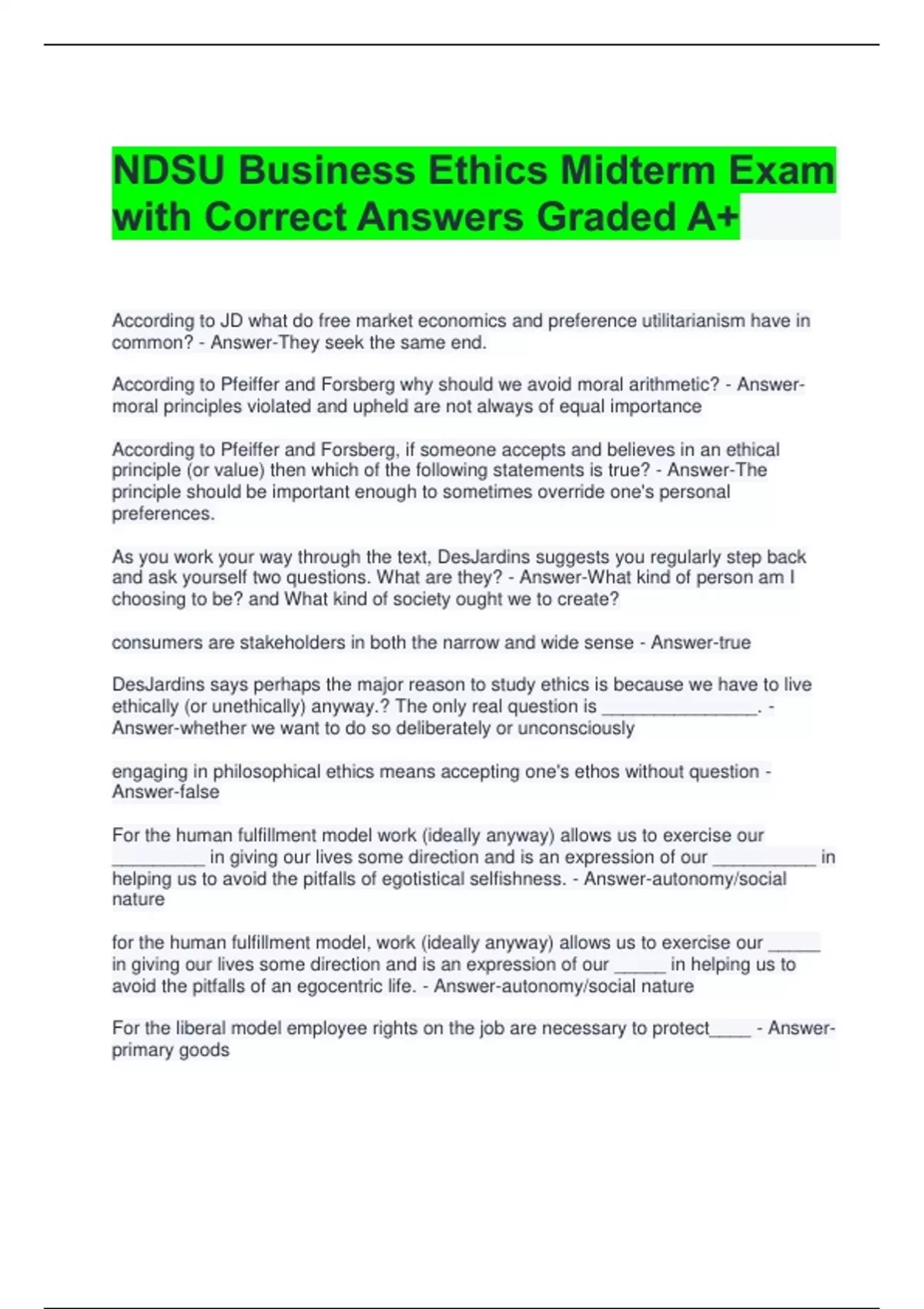 with Correct Answers Graded A+