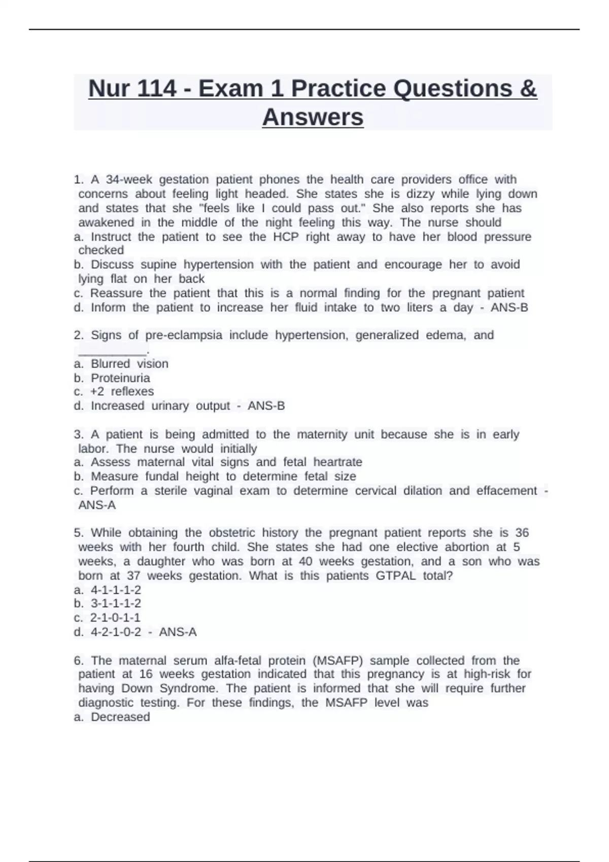 Nur 114 - Exam 1 Practice Questions &