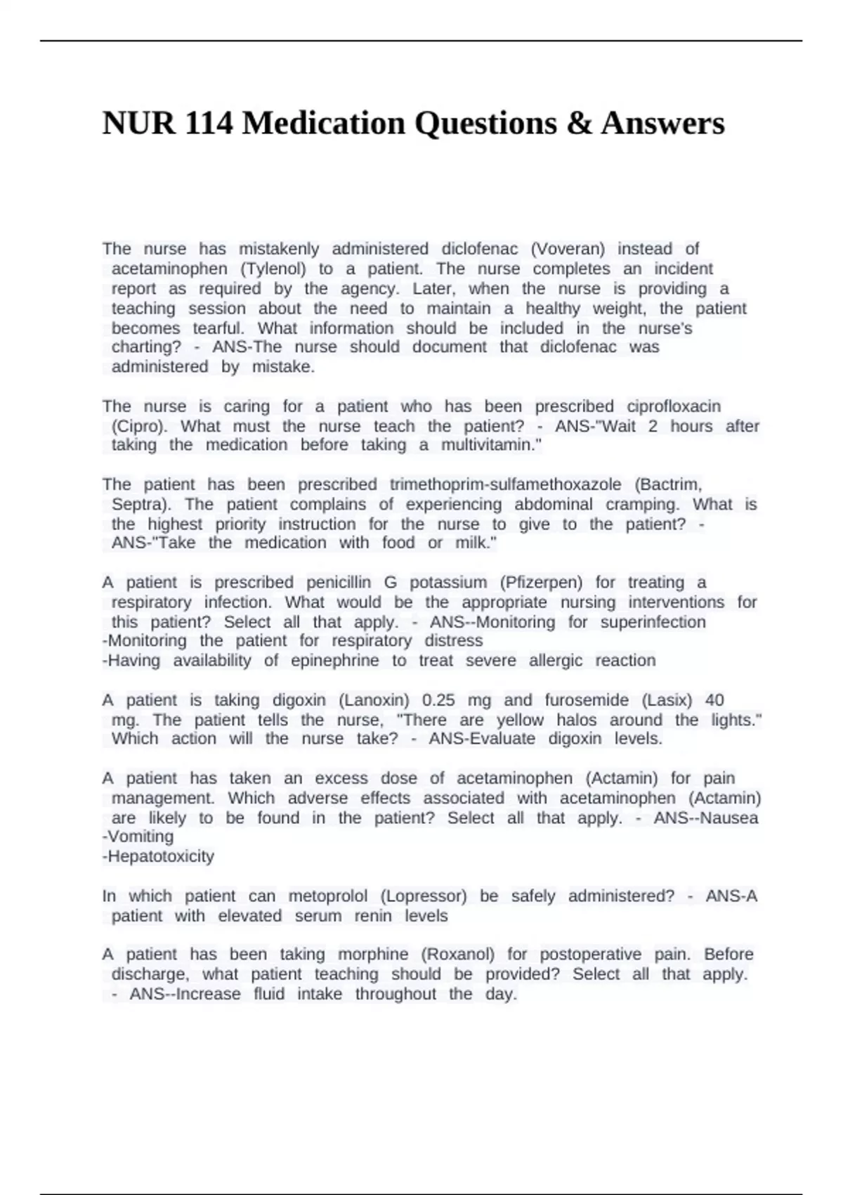 NUR 114 Medication Questions & Answers