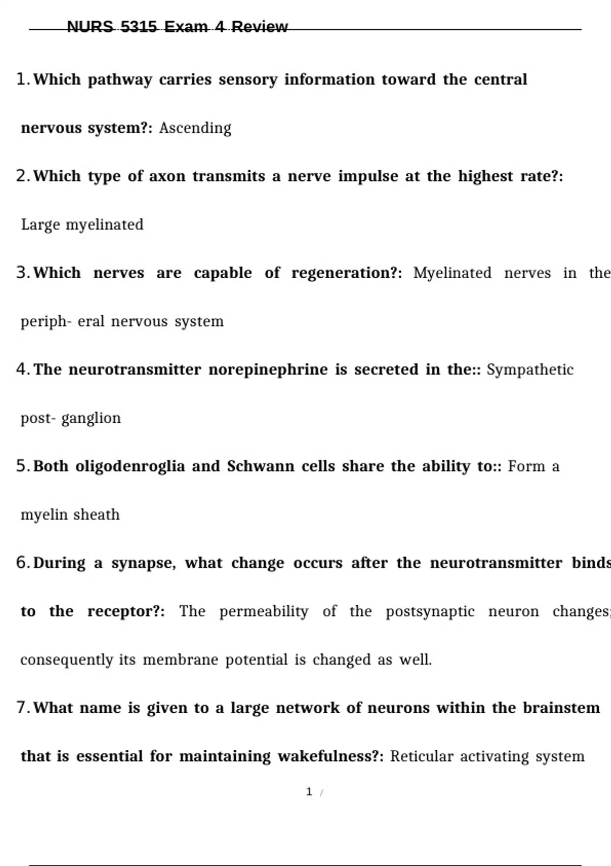 1. Which npathway ncarries nsensory ninformation ntoward nthe ncentral