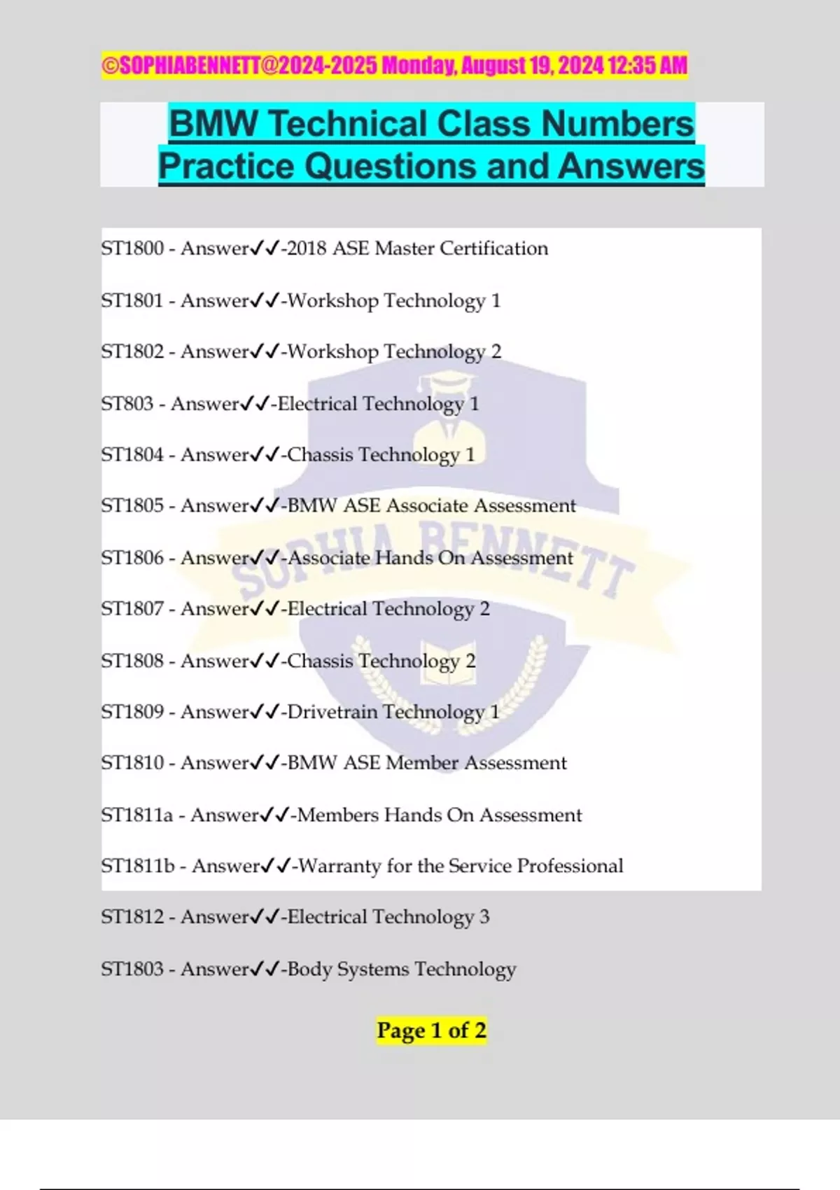 ST1800 - Answer✔️✔️-2018 ASE Master Certification
