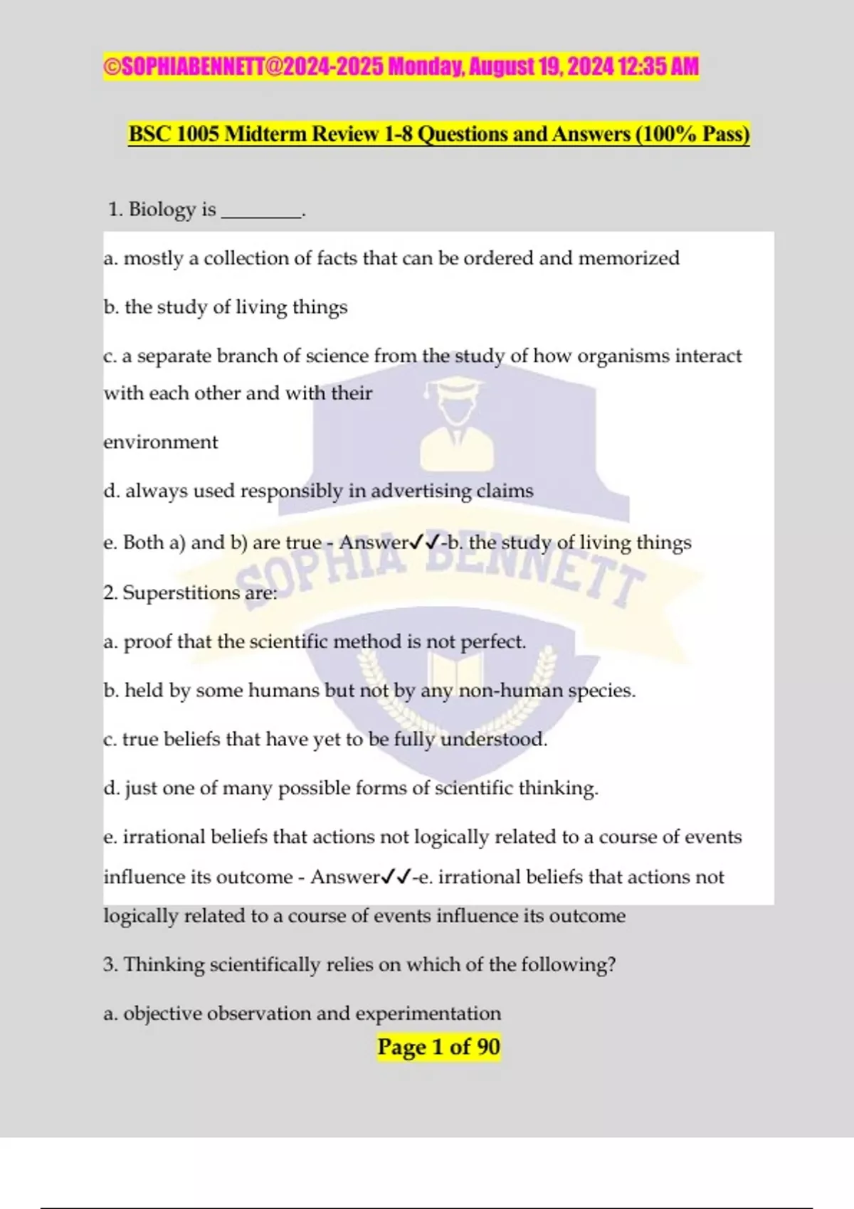 BSC 1005 Midterm Review 1-8 Questions and Answers (100% Pass)