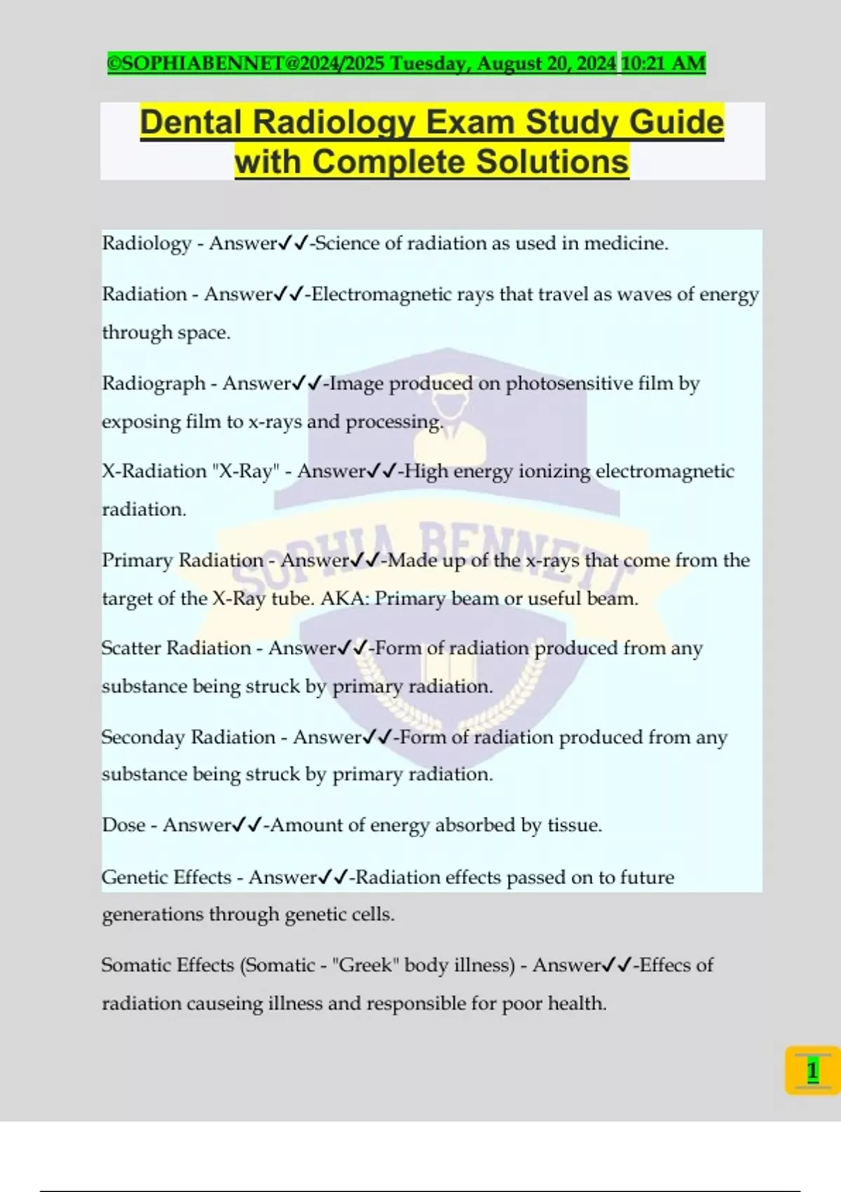 Dental Radiology Exam Study Guide